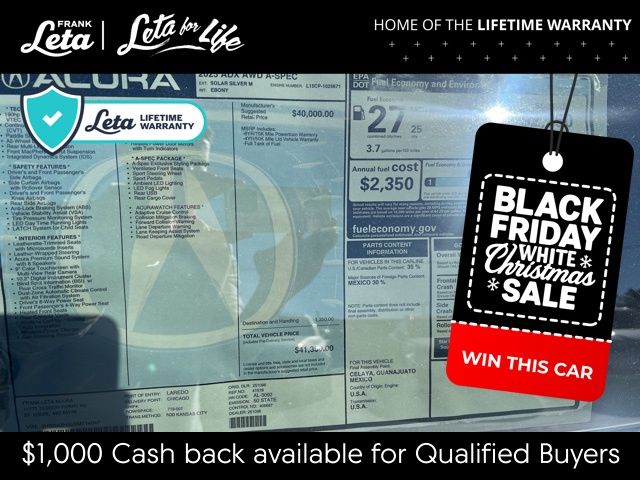 ADX A-Spec Package, 4D Sport Utility, AWD, Solar Silver Metallic, Ebony w/Leatherette Trimmed Seats, Power Liftgate, Power moonroof: Panoramic, Wheels: 19" x 8J Aluminum Alloy, 4-Wheel Disc Brakes, 8 Speakers, ABS brakes, Air Conditioning, Alloy wheels, AM/FM radio, Apple CarPlay/Android Auto, Auto High-beam Headlights, Auto-dimming Rear-View mirror, Automatic temperature control, Brake assist, Bumpers: body-color, Delay-off headlights, Driver door bin, Driver vanity mirror, Dual front impact airbags, Dual front side impact airbags, Electronic Stability Control, Emergency communication system: AcuraLink, Exterior Parking Camera Rear, Four wheel independent suspension, Front anti-roll bar, Front Bucket Seats, Front Center Armrest, Front dual zone A/C, Front fog lights, Front reading lights, Fully automatic headlights, Heated & Ventilated Front Bucket Seats, Heated door mirrors, Heated front seats, Illuminated entry, Knee airbag, Lane departure: Lane Keeping Assist System (LKAS) active, Leather Shift Knob, Leather steering wheel, Leatherette Trimmed Seats w/ Microsuede Accents, Low tire pressure warning, Occupant sensing airbag, Outside temperature display, Overhead airbag, Overhead console, Panic alarm, Passenger door bin, Passenger vanity mirror, Power door mirrors, Power driver seat, Power passenger seat, Power steering, Power windows, Radio data system, Radio: AM/FM Acura Premium Audio System, Rear anti-roll bar, Rear reading lights, Rear seat center armrest, Rear side impact airbag, Rear window defroster, Rear window wiper, Remote keyless entry, Security system, Speed control, Speed-sensing steering, Split folding rear seat, Spoiler, Sport steering wheel, Steering wheel mounted audio controls, Tachometer, Telescoping steering wheel, Tilt steering wheel, Traction control, Trip computer, Turn signal indicator mirrors, Variably intermittent wipers, Ventilated front seats, ADX A-Spec Package, 4D Sport Utility, AWD, Solar Silver Metallic, Ebony w/Leatherette Trimmed Seats, Power Liftgate, Power moonroof: Panoramic, Wheels: 19" x 8J Aluminum Alloy. * Fuel economy figures shown are provided from EPA mileage estimates and may not be comparable across different model years. Actual mileage will vary, depending on specific options selected, vehicle maintenance and your driving habits. Price includes: $1000 - 2025 ADX Sales Credit. Exp. 01/05/2026