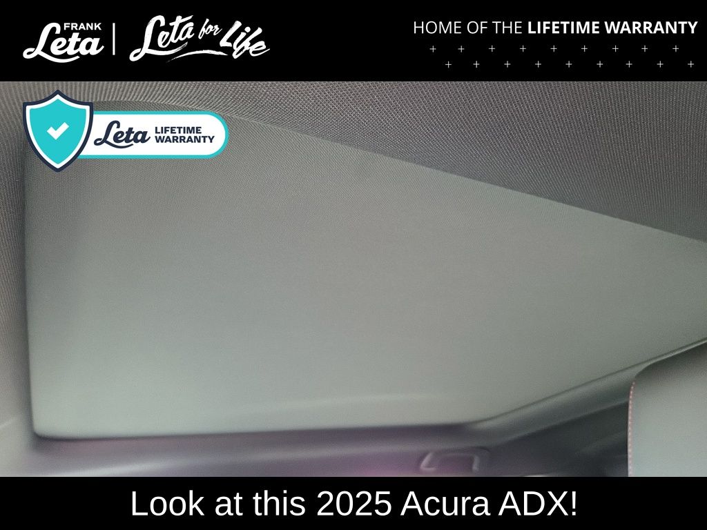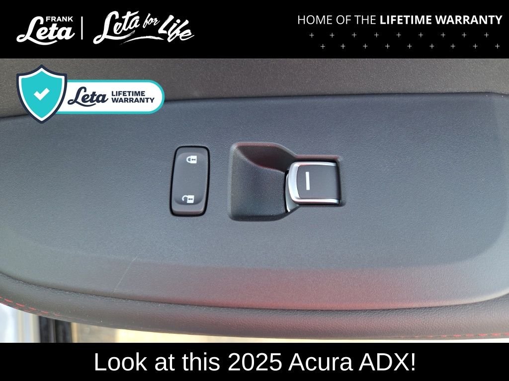 ADX A-Spec Package, AWD, Solar Silver Metallic, Ebony w/Leather Trimmed Seats, Power Liftgate, Power moonroof: Panoramic, Wheels: 19" x 8J Aluminum Alloy, 4-Wheel Disc Brakes, 8 Speakers, ABS brakes, Air Conditioning, Alloy wheels, AM/FM radio, Apple CarPlay/Android Auto, Auto High-beam Headlights, Auto-dimming Rear-View mirror, Automatic temperature control, Brake assist, Bumpers: body-color, Delay-off headlights, Driver door bin, Driver vanity mirror, Dual front impact airbags, Dual front side impact airbags, Electronic Stability Control, Emergency communication system: AcuraLink, Exterior Parking Camera Rear, Four wheel independent suspension, Front anti-roll bar, Front Bucket Seats, Front Center Armrest, Front dual zone A/C, Front fog lights, Front reading lights, Fully automatic headlights, Heated & Ventilated Front Bucket Seats, Heated door mirrors, Heated front seats, Illuminated entry, Knee airbag, Lane departure: Lane Keeping Assist System (LKAS) active, Leather Shift Knob, Leather steering wheel, Leatherette Trimmed Seats w/ Microsuede Accents, Low tire pressure warning, Occupant sensing airbag, Outside temperature display, Overhead airbag, Overhead console, Panic alarm, Passenger door bin, Passenger vanity mirror, Power door mirrors, Power driver seat, Power passenger seat, Power steering, Power windows, Radio data system, Radio: AM/FM Acura Premium Audio System, Rear anti-roll bar, Rear reading lights, Rear seat center armrest, Rear side impact airbag, Rear window defroster, Rear window wiper, Remote keyless entry, Security system, Speed control, Speed-sensing steering, Split folding rear seat, Spoiler, Sport steering wheel, Steering wheel mounted audio controls, Tachometer, Telescoping steering wheel, Tilt steering wheel, Traction control, Trip computer, Turn signal indicator mirrors, Variably intermittent wipers, Ventilated front seats, ADX A-Spec Package, AWD, Solar Silver Metallic, Ebony w/Leather Trimmed Seats, Power Liftgate, Power moonroof: Panoramic, Wheels: 19" x 8J Aluminum Alloy. Price includes: $1000 - 2025 ADX Sales Credit. Exp. 01/05/2026