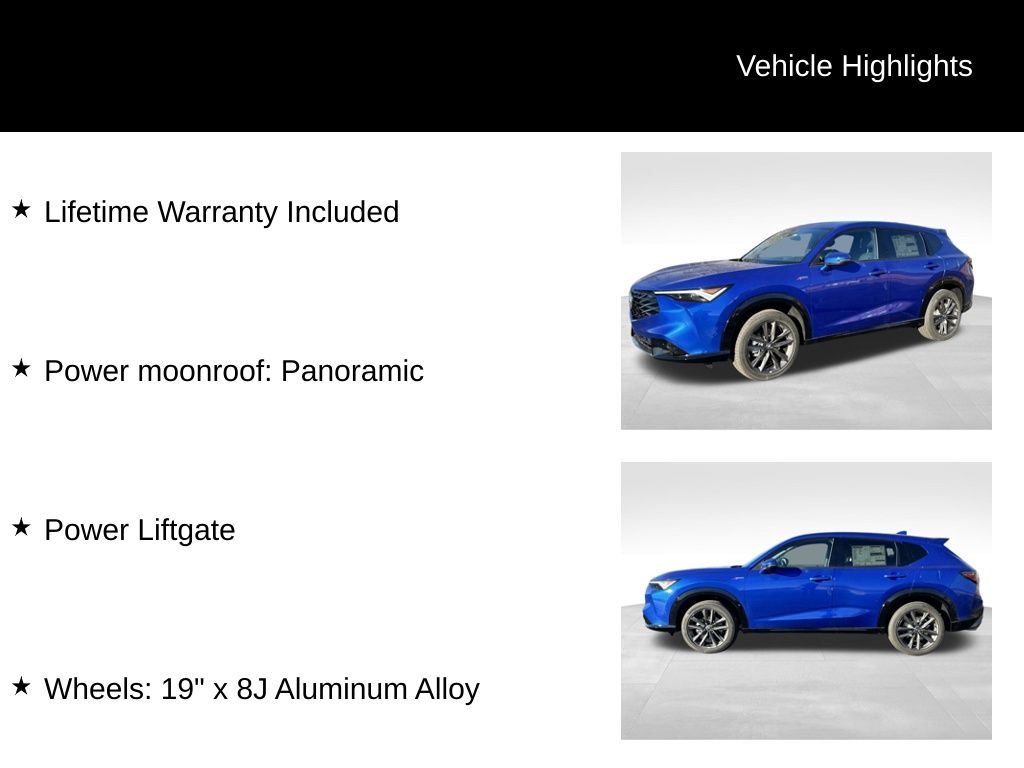 The A-Spec Package takes the Acura ADX to new heights, adding a host of premium features that elevate both the driving dynamics and the overall aesthetic. The panoramic power moonroof floods the cabin with natural light, while the power liftgate provides effortless access to the spacious cargo area. The 19-inch aluminum alloy wheels lend a bold, sporty appearance that is sure to turn heads wherever you go.