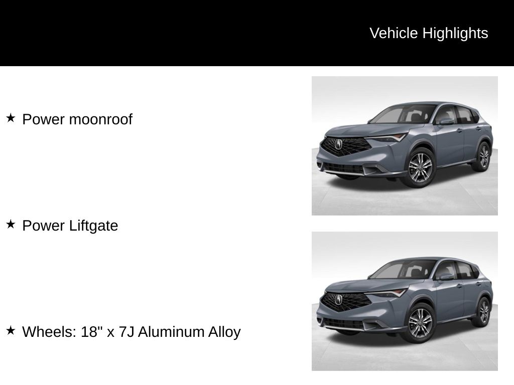 AWD, Crystal Black Pearl, Ebony w/Leather Trimmed Seats, Power Liftgate, Power moonroof, Wheels: 18" x 7J Aluminum Alloy, 4-Wheel Disc Brakes, 8 Speakers, ABS brakes, Air Conditioning, Alloy wheels, AM/FM radio, Apple CarPlay/Android Auto, Auto High-beam Headlights, Auto-dimming Rear-View mirror, Automatic temperature control, Brake assist, Bumpers: body-color, Delay-off headlights, Driver door bin, Driver vanity mirror, Dual front impact airbags, Dual front side impact airbags, Electronic Stability Control, Emergency communication system: AcuraLink, Exterior Parking Camera Rear, Four wheel independent suspension, Front anti-roll bar, Front Bucket Seats, Front Center Armrest, Front dual zone A/C, Front reading lights, Fully automatic headlights, Heated door mirrors, Heated Front Bucket Seats, Heated front seats, Illuminated entry, Knee airbag, Lane departure: Lane Keeping Assist System (LKAS) active, Leather Shift Knob, Leather steering wheel, Leatherette Trimmed Seats, Low tire pressure warning, Occupant sensing airbag, Outside temperature display, Overhead airbag, Overhead console, Panic alarm, Passenger door bin, Passenger vanity mirror, Power door mirrors, Power driver seat, Power steering, Power windows, Radio data system, Radio: AM/FM Acura Premium Audio System, Rear anti-roll bar, Rear reading lights, Rear seat center armrest, Rear side impact airbag, Rear window defroster, Rear window wiper, Remote keyless entry, Security system, Speed control, Speed-sensing steering, Split folding rear seat, Spoiler, Steering wheel mounted audio controls, Tachometer, Telescoping steering wheel, Tilt steering wheel, Traction control, Trip computer, Turn signal indicator mirrors, Variably intermittent wipers, AWD, Crystal Black Pearl, Ebony w/Leather Trimmed Seats, Power Liftgate, Power moonroof, Wheels: 18" x 7J Aluminum Alloy. * Fuel economy figures shown are provided from EPA mileage estimates and may not be comparable across different model years. Actual mileage will vary, depending on specific options selected, vehicle maintenance and your driving habits. Price includes: $1000 - 2025 ADX Sales Credit. Exp. 01/05/2026
