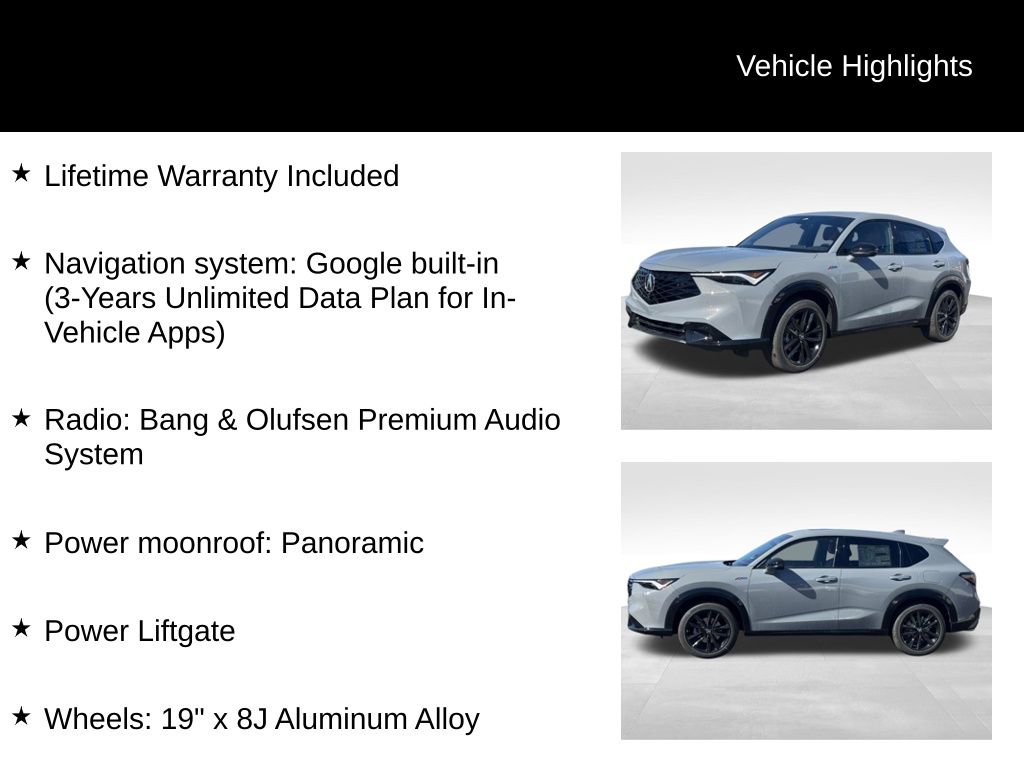 The interior of the ADX is a true sanctuary of luxury and technology. Heated and ventilated front seats, a heated steering wheel, and a panoramic moonroof create a serene and comfortable driving experience. The Bang & Olufsen premium audio system, with 15 speakers, delivers a concert-hall-quality sound experience, while the Google-powered navigation system keeps you on course with seamless integration and unlimited in-vehicle data.