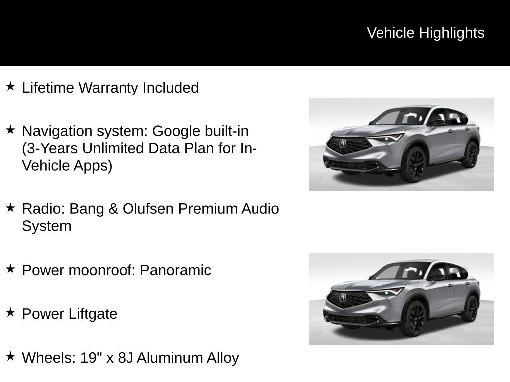 Acura's commitment to innovation is evident in the ADX's cutting-edge technology. The Google-powered navigation system provides seamless integration with your digital life, while the Lane Keeping Assist System and Rear Camera ensure you navigate the roads with confidence and ease.