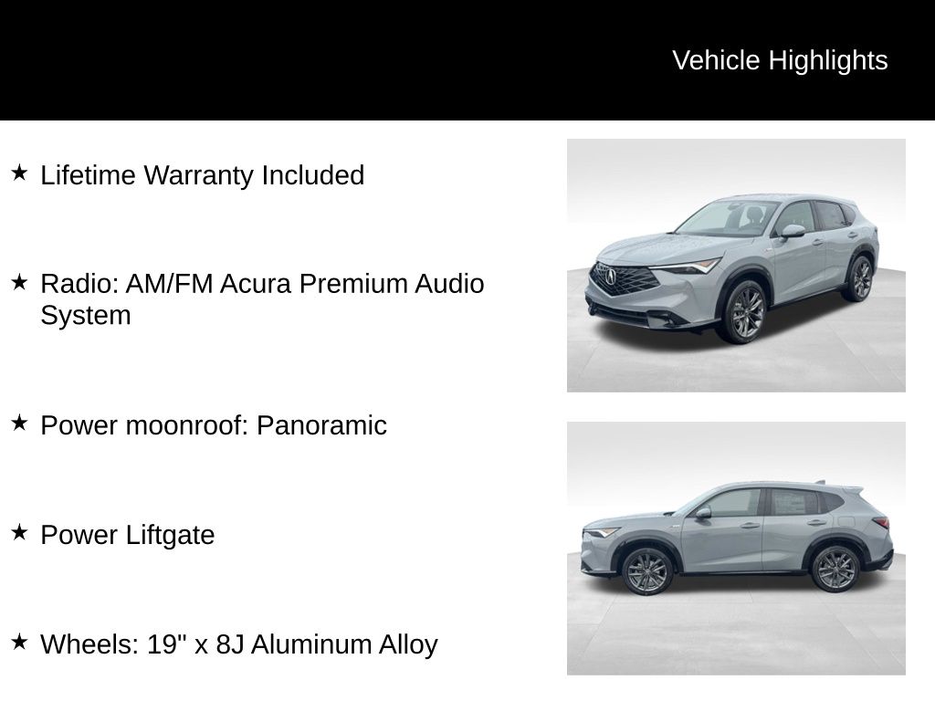 Exuding a bold and sophisticated presence, the ADX A-Spec Package boasts a striking exterior design with sleek lines, a panoramic moonroof, and a power liftgate for effortless access to the spacious cargo area.
