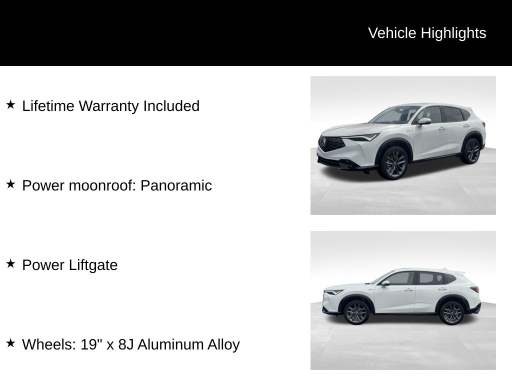 Under the hood, the ADX boasts a 1.5L I4 Turbocharged DOHC 16V engine that produces a thrilling 190 horsepower, delivering a dynamic and responsive performance. Paired with Acura's renowned AWD system, this vehicle provides exceptional control and confidence on the road, no matter the conditions.