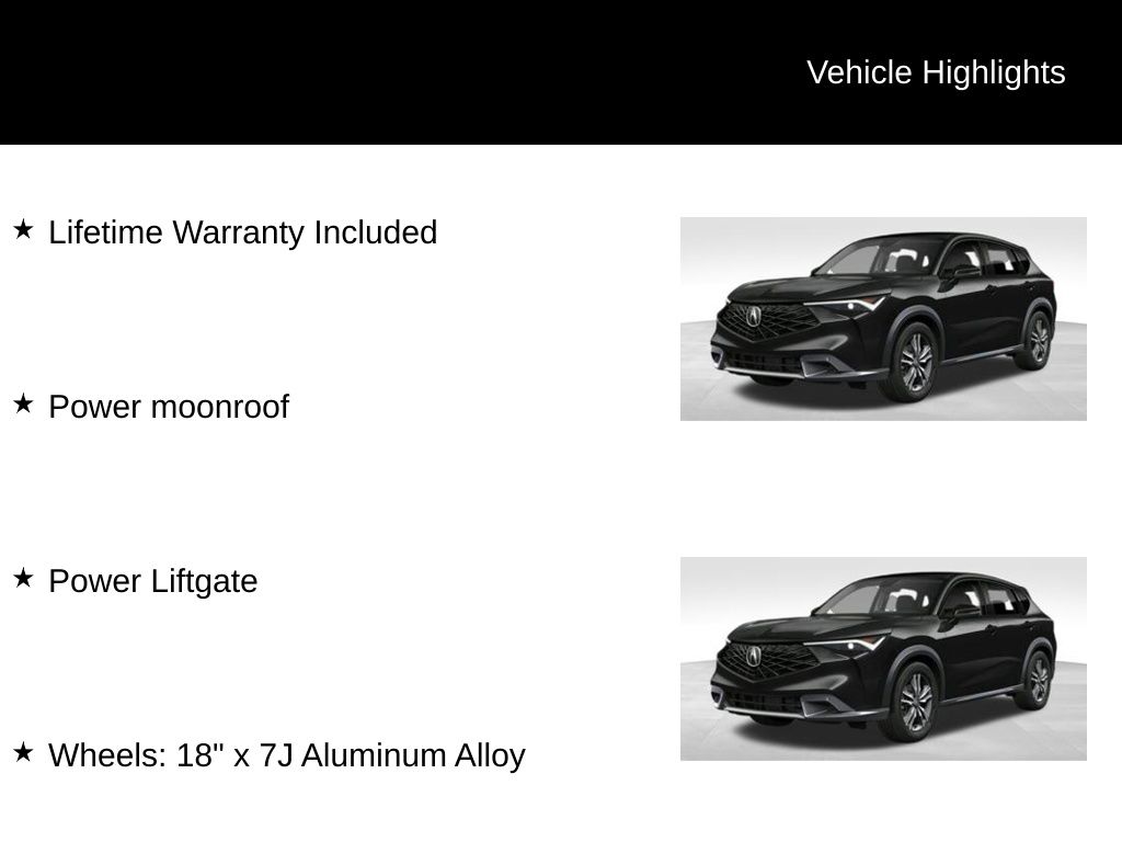 Powered by a 1.5L I4 Turbocharged DOHC 16V engine delivering 190 horsepower, the ADX Base offers a thrilling and efficient ride, with an impressive EPA-estimated 25 city/30 highway MPG. The advanced Continuously Variable Transmission (CVT) and All-Wheel Drive (AWD) system ensure a smooth and confident driving experience, no matter the road conditions.