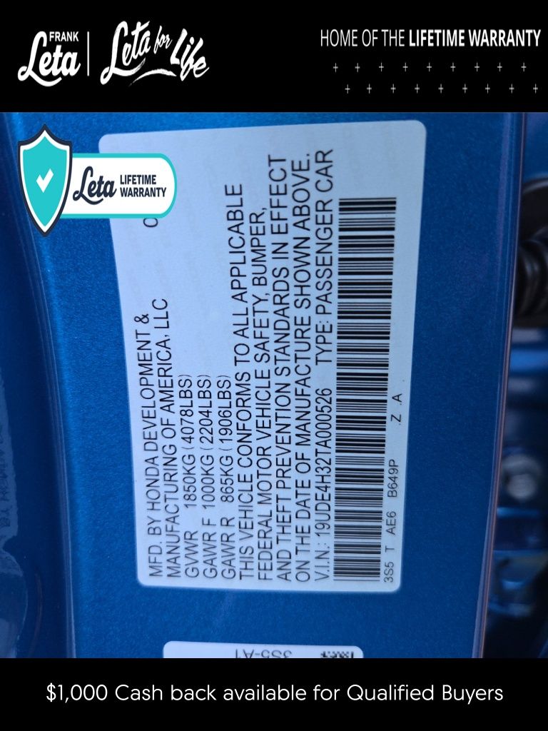 - VIN : 19UDE4H32TA000526