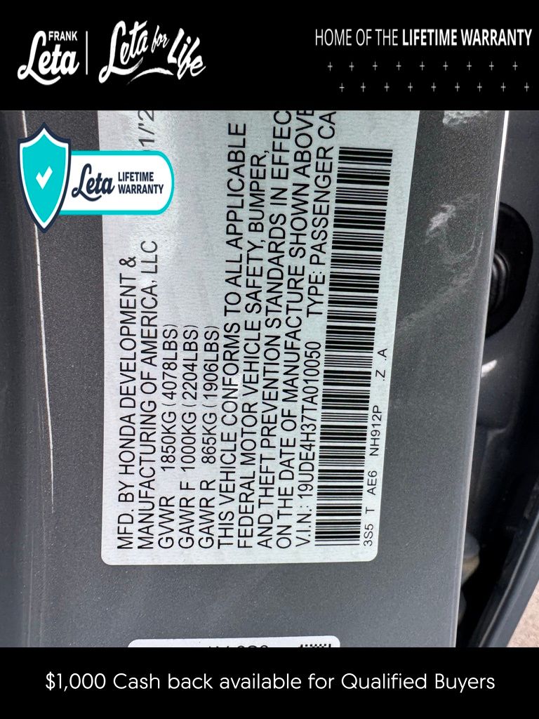 - VIN : 19UDE4H37TA010050