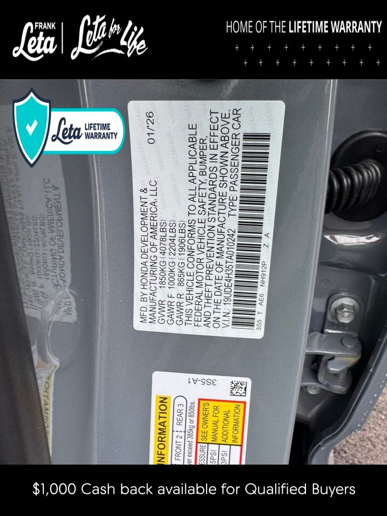 - VIN : 19UDE4H35TA010242