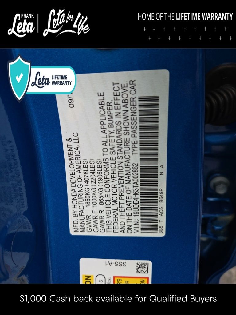 - VIN : 19UDE4H63TA002862