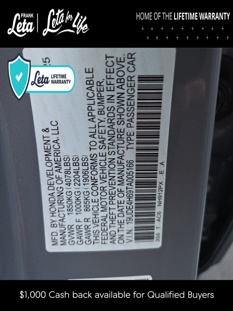 - VIN : 19UDE4H69TA005166