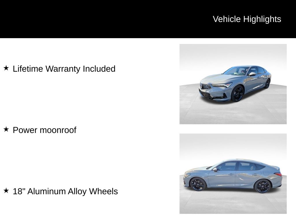 Powered by a 1.5L I4 DOHC 16V engine and equipped with a CVT transmission, this Integra delivers an exceptional balance of power and efficiency, with an impressive 29 city / 37 highway MPG rating. The sleek gray exterior and premium features, including a power moonroof and 18-inch alloy wheels, give this Integra a commanding presence on the road.