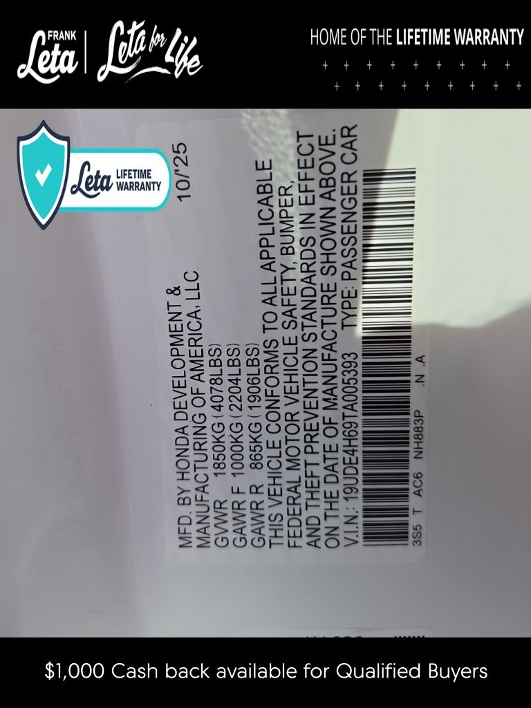 - VIN : 19UDE4H69TA005393