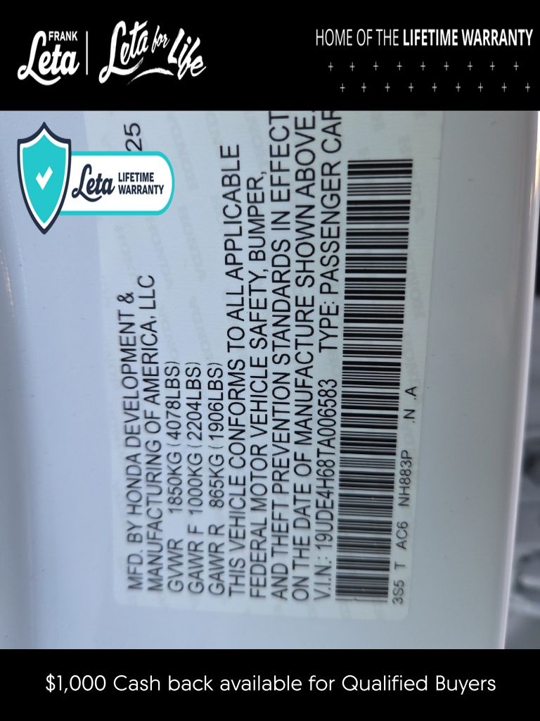 - VIN : 19UDE4H68TA006583