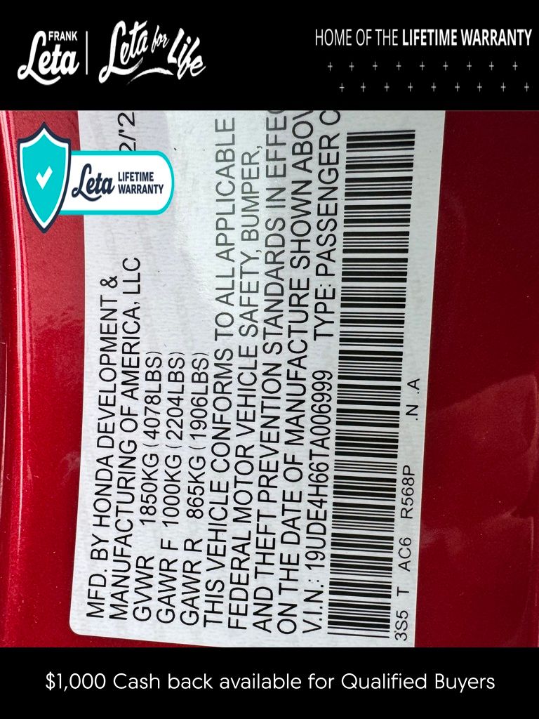 - VIN : 19UDE4H66TA006999