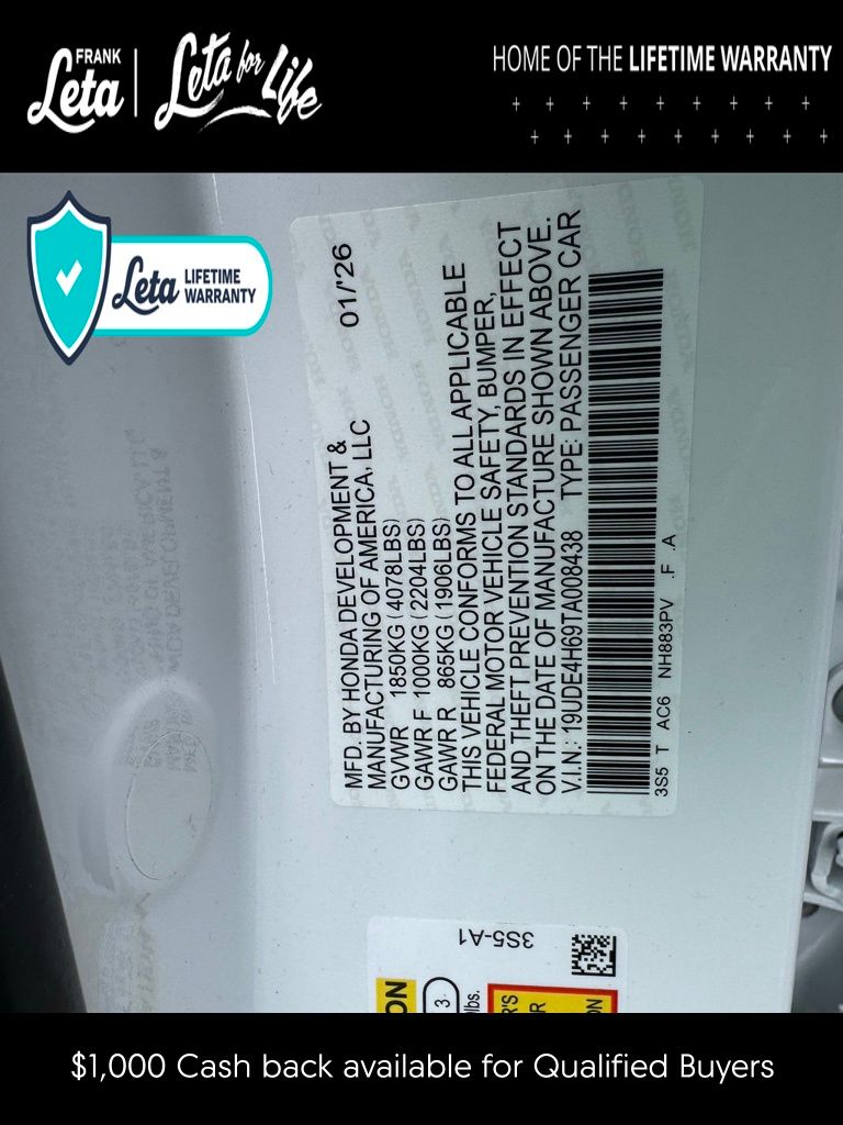 - VIN : 19UDE4H69TA008438