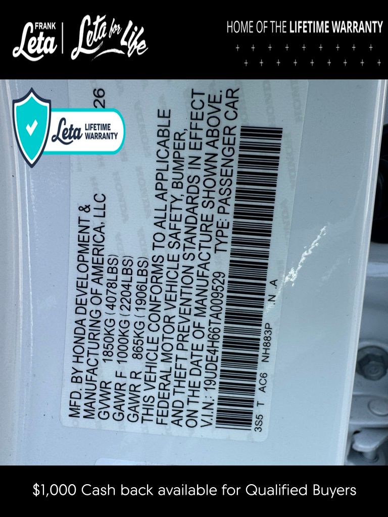 - VIN : 19UDE4H66TA009529