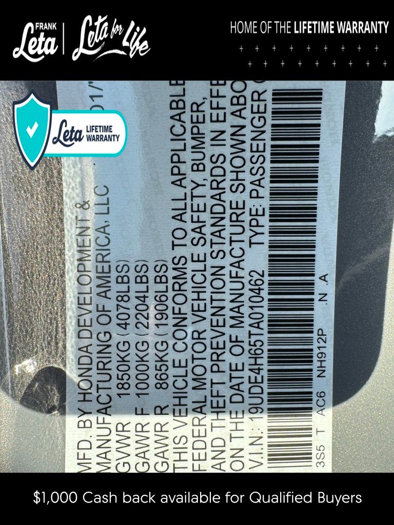 - VIN : 19UDE4H65TA010462
