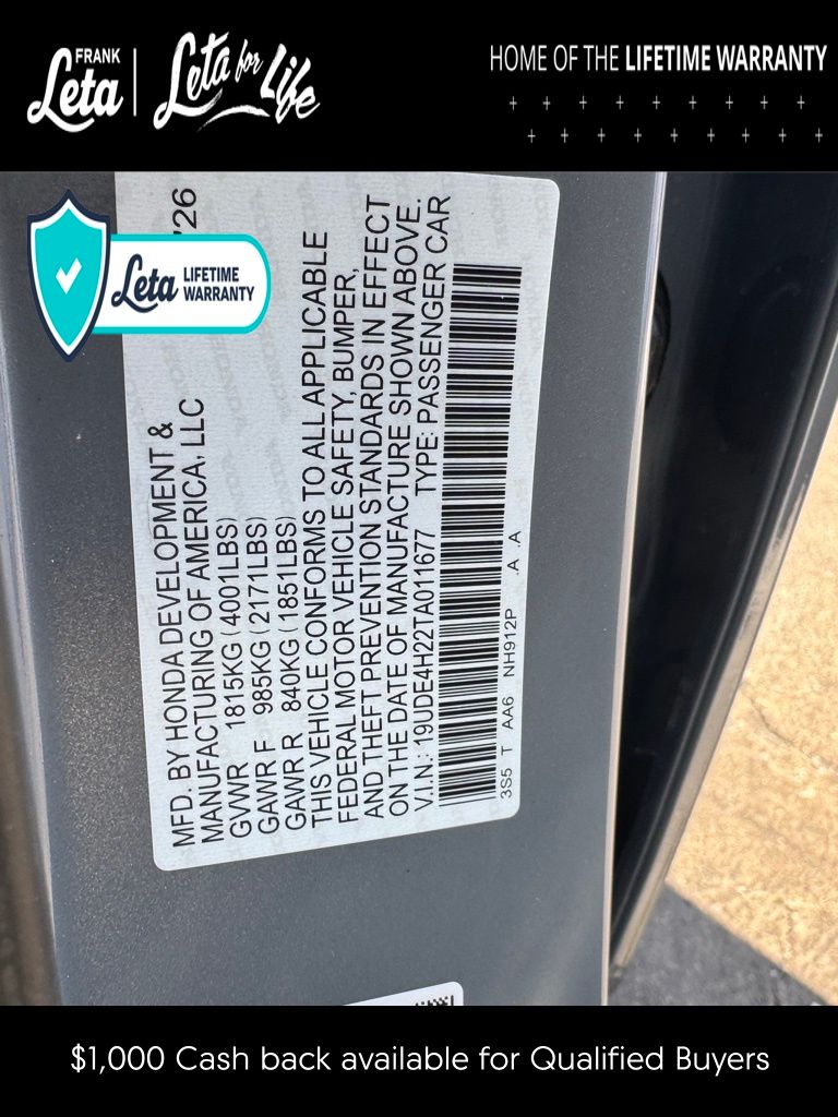 - VIN : 19UDE4H22TA011677