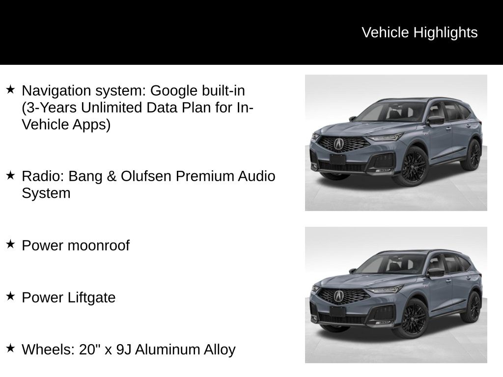 MDX A-Spec Advance Package SH-AWD, 3.5L V6 SOHC i-VTEC 24V, AWD, Majestic Black Pearl, Ebony w/Leatherette Trimmed Seats, Navigation system: Google built-in (3-Years Unlimited Data Plan for In-Vehicle Apps), Power Liftgate, Power moonroof, Radio: Bang & Olufsen Premium Audio System, Wheels: 20" x 9J Aluminum Alloy, 19 Speakers, 3rd row seats: split-bench, 4-Wheel Disc Brakes, ABS brakes, Air Conditioning, Alloy wheels, AM/FM radio, Anti-whiplash front head restraints, Apple CarPlay/Android Auto, Audio memory, Auto High-beam Headlights, Auto tilt-away steering wheel, Auto-dimming Rear-View mirror, Automatic temperature control, Brake assist, Bumpers: body-color, Compass, Curvilinear Quilted Perforated Premium Milano Leather Seats, Delay-off headlights, Driver door bin, Driver vanity mirror, Dual front impact airbags, Dual front side impact airbags, Electronic Stability Control, Emergency communication system: AcuraLink, Exterior Parking Camera Rear, Four wheel independent suspension, Front anti-roll bar, Front Bucket Seats, Front Center Armrest, Front dual zone A/C, Front fog lights, Front reading lights, Fully automatic headlights, Garage door transmitter: HomeLink, Heads-Up Display, Heated and Ventilated Front Sport Seats, Heated door mirrors, Heated front seats, Heated rear seats, Heated steering wheel, HVAC memory, Illuminated entry, Knee airbag, Lane departure: Lane Keeping Assist System (LKAS) active, Leather steering wheel, Low tire pressure warning, Memory seat, Occupant sensing airbag, Outside temperature display, Overhead airbag, Overhead console, Panic alarm, Passenger door bin, Passenger vanity mirror, Power door mirrors, Power driver seat, Power passenger seat, Power steering, Power windows, Premium audio system: Acura/ELS Studio 3D, Radio data system, Rain sensing wipers, Rear air conditioning, Rear anti-roll bar, Rear reading lights, Rear seat center armrest, Rear window defroster, Rear window wiper, Remote keyless entry, Security system, Speed control, Speed-sensing steering, Speed-Sensitive Wipers, Split folding rear seat, Spoiler, Sport steering wheel, Steering wheel memory, Steering wheel mounted audio controls, Tachometer, Telescoping steering wheel, Tilt steering wheel, Traction control, Trip computer, Turn signal indicator mirrors, Variably intermittent wipers, Ventilated front seats, MDX A-Spec Advance Package SH-AWD, 3.5L V6 SOHC i-VTEC 24V, AWD, Majestic Black Pearl, Ebony w/Leatherette Trimmed Seats, Navigation system: Google built-in (3-Years Unlimited Data Plan for In-Vehicle Apps), Power Liftgate, Power moonroof, Radio: Bang & Olufsen Premium Audio System, Wheels: 20" x 9J Aluminum Alloy. * Fuel economy figures shown are provided from EPA mileage estimates and may not be comparable across different model years. Actual mileage will vary, depending on specific options selected, vehicle maintenance and your driving habits.