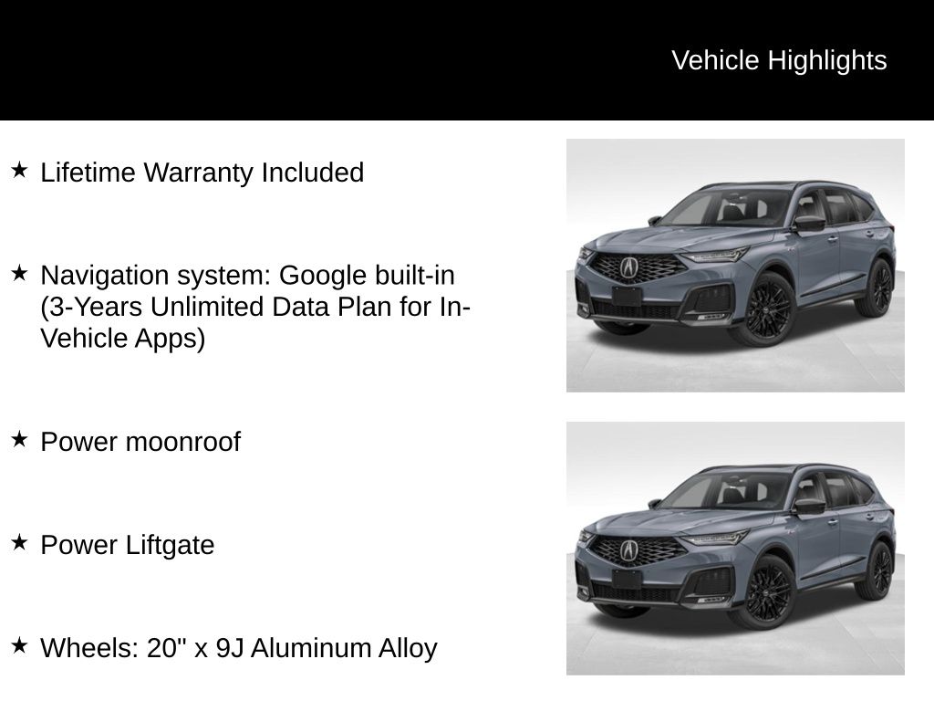 Experience the pinnacle of luxury and technology with the 2026 Acura MDX A-Spec Advance Package SH-AWD. Visit our showroom today and let us demonstrate why this SUV is the perfect choice for your next adventure. * Fuel economy figures shown are provided from EPA mileage estimates and may not be comparable across different model years. Actual mileage will vary, depending on specific options selected, vehicle maintenance and your driving habits.