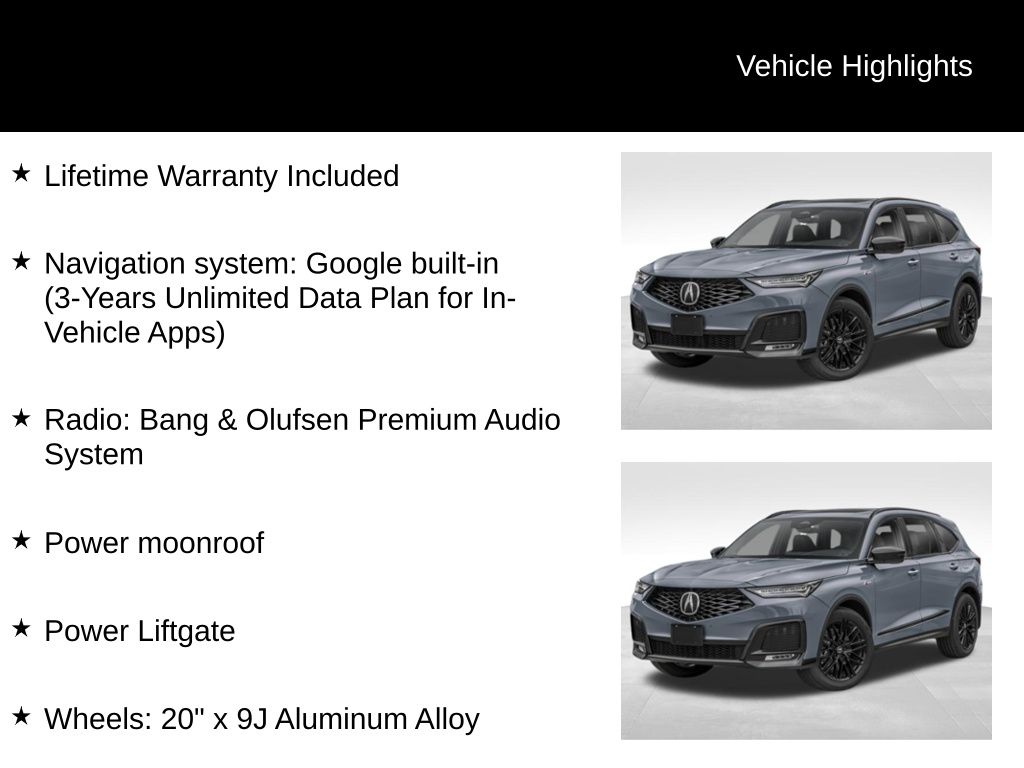 Beyond these standout amenities, the MDX A-Spec Advance Package SH-AWD is meticulously crafted to deliver an exceptional driving experience. Its 3.5L V6 SOHC i-VTEC 24V engine, paired with a responsive 10-Speed Automatic transmission and Acura's renowned Super Handling All-Wheel Drive (SH-AWD) system, provides a thrilling blend of power, control, and efficiency.