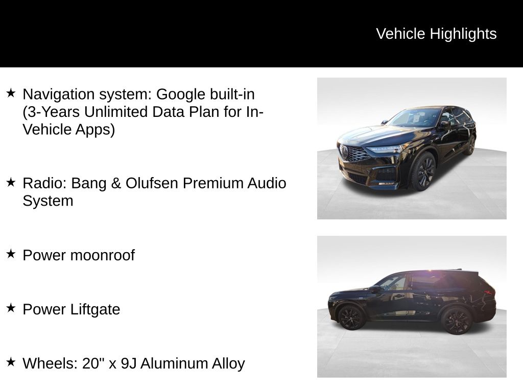 MDX A-Spec SH-AWD, 3.5L V6 SOHC i-VTEC 24V, AWD, Majestic Black Pearl, Ebony w/Curvilinear Qltd Prem Milano Lthr & Ultrasuede Seats, Navigation system: Google built-in (3-Years Unlimited Data Plan for In-Vehicle Apps), Power Liftgate, Power moonroof, Radio: Bang & Olufsen Premium Audio System, Wheels: 20" x 9J Aluminum Alloy, 19 Speakers, 3rd row seats: split-bench, 4-Wheel Disc Brakes, ABS brakes, Air Conditioning, Alloy wheels, Anti-whiplash front head restraints, Apple CarPlay/Android Auto, Audio memory, Auto High-beam Headlights, Auto tilt-away steering wheel, Auto-dimming Rear-View mirror, Automatic temperature control, Brake assist, Bumpers: body-color, Compass, Delay-off headlights, Driver door bin, Driver vanity mirror, Dual front impact airbags, Dual front side impact airbags, Electronic Stability Control, Emergency communication system: AcuraLink, Exterior Parking Camera Rear, Four wheel independent suspension, Front anti-roll bar, Front Bucket Seats, Front Center Armrest, Front dual zone A/C, Front fog lights, Front reading lights, Fully automatic headlights, Garage door transmitter: HomeLink, Heated & Ventilated Front Sport Seats, Heated door mirrors, Heated front seats, HVAC memory, Illuminated entry, Knee airbag, Lane departure: Lane Keeping Assist System (LKAS) active, Leather steering wheel, Low tire pressure warning, Memory seat, Occupant sensing airbag, Outside temperature display, Overhead airbag, Overhead console, Panic alarm, Passenger door bin, Passenger vanity mirror, Perforated Premium Milano Lthr & Ultrasuede Seats, Power door mirrors, Power driver seat, Power passenger seat, Power steering, Power windows, Premium audio system: Acura/ELS Studio 3D, Radio data system, Rain sensing wipers, Rear air conditioning, Rear anti-roll bar, Rear reading lights, Rear seat center armrest, Rear window defroster, Rear window wiper, Remote keyless entry, Security system, Speed control, Speed-sensing steering, Speed-Sensitive Wipers, Split folding rear seat, Spoiler, Sport steering wheel, Steering wheel memory, Steering wheel mounted audio controls, Tachometer, Telescoping steering wheel, Tilt steering wheel, Traction control, Trip computer, Turn signal indicator mirrors, Variably intermittent wipers, Ventilated front seats, MDX A-Spec SH-AWD, 3.5L V6 SOHC i-VTEC 24V, AWD, Majestic Black Pearl, Ebony w/Curvilinear Qltd Prem Milano Lthr & Ultrasuede Seats, Navigation system: Google built-in (3-Years Unlimited Data Plan for In-Vehicle Apps), Power Liftgate, Power moonroof, Radio: Bang & Olufsen Premium Audio System, Wheels: 20" x 9J Aluminum Alloy. * Fuel economy figures shown are provided from EPA mileage estimates and may not be comparable across different model years. Actual mileage will vary, depending on specific options selected, vehicle maintenance and your driving habits.