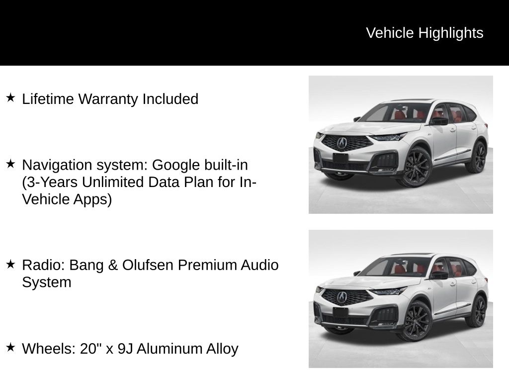 Powered by a potent 3.5L V6 SOHC i-VTEC 24V engine and equipped with a smooth 10-Speed Automatic transmission, the MDX A-Spec delivers a thrilling yet refined performance. With Acura's renowned Super Handling All-Wheel Drive (SH-AWD) system, you'll enjoy confident handling and exceptional traction, no matter the road conditions.
