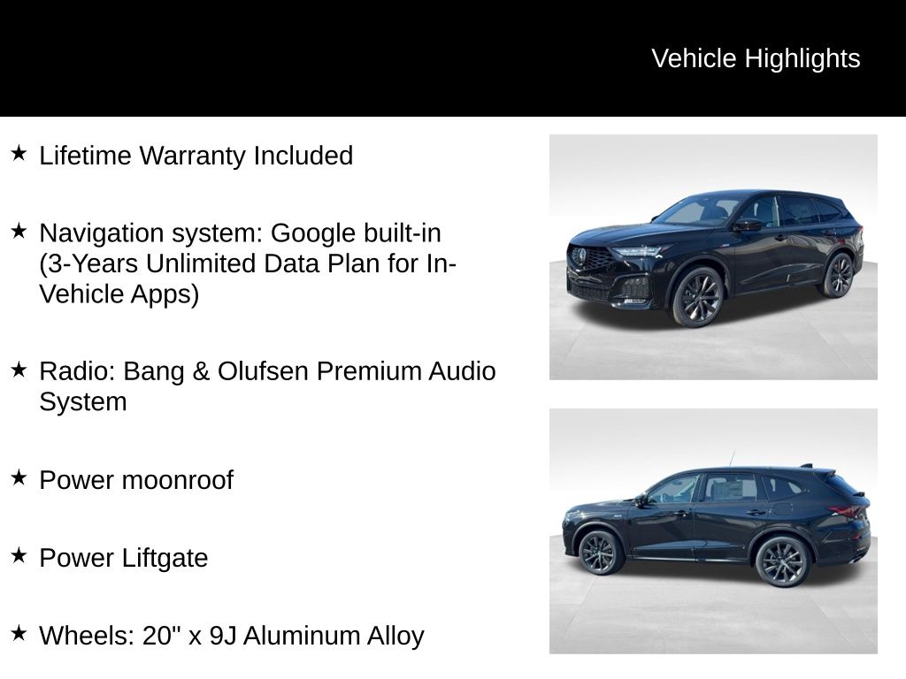 Elevate your driving experience with the MDX A-Spec's exceptional performance. The 10-speed automatic transmission and Acura's renowned Super Handling All-Wheel Drive (SH-AWD) system deliver exceptional handling and control, allowing you to conquer any terrain with confidence. With an impressive fuel efficiency of 19 city and 25 highway MPG, this SUV offers the perfect balance of power and efficiency.