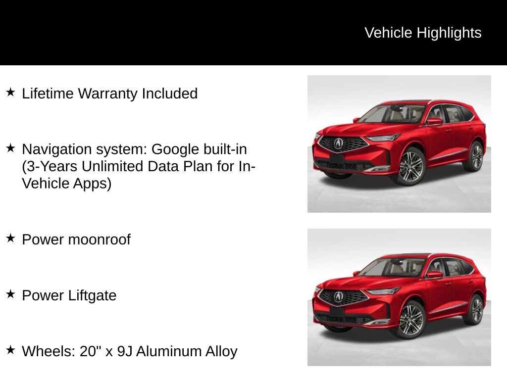 The Acura MDX Advance Package SH-AWD is more than just a vehicle it's a statement of refined sophistication. Step inside and be captivated by the luxurious cabin, featuring 19 premium speakers, a Bang & Olufsen audio system, and a host of advanced technologies, including a Heads-Up Display, Apple CarPlay/Android Auto integration, and a comprehensive suite of driver-assistance features.