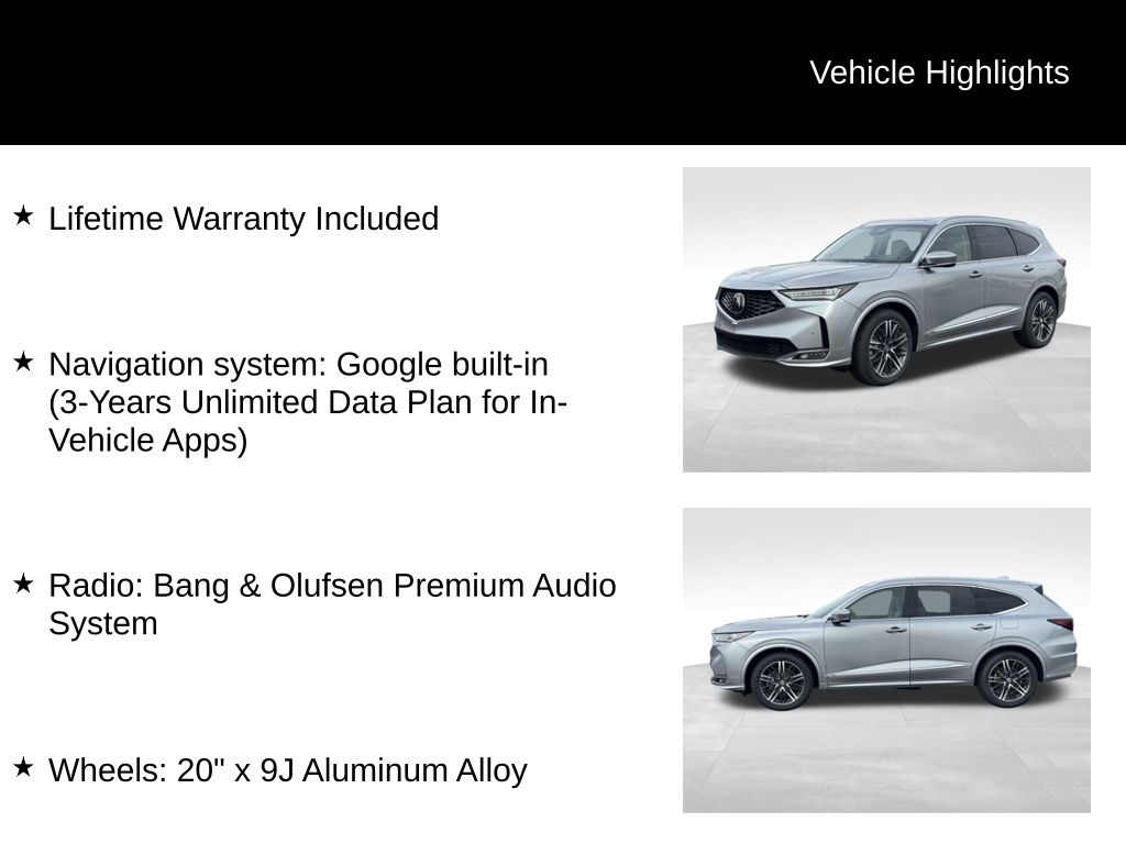 Beyond its dynamic capabilities, the 2026 Acura MDX Advance Package SH-AWD is a true marvel of modern automotive engineering. Boasting 19 premium speakers, a Bang & Olufsen audio system, and a Heads-Up Display, this vehicle caters to the senses and provides an unparalleled driving experience. The Adaptive Suspension, Four Wheel Independent Suspension, and Speed-Sensing Steering ensure a smooth and responsive ride, while the Lane Keeping Assist System and Rear Camera offer enhanced safety and convenience.