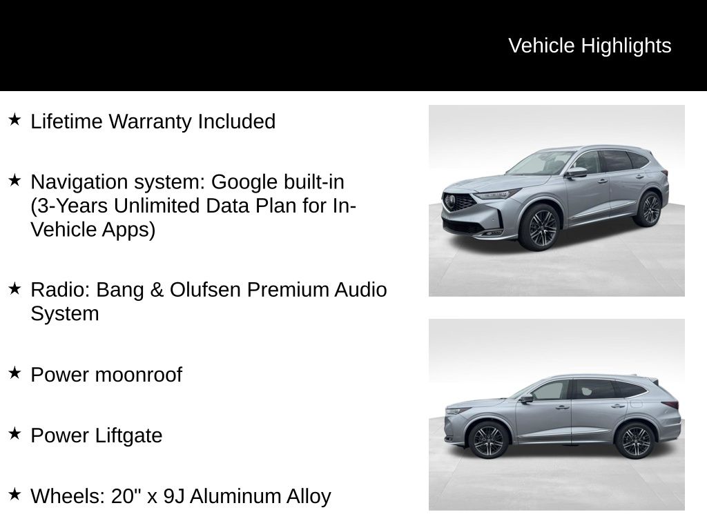 Elevate your driving experience with the Acura MDX's advanced technology features, including a Heads-Up Display, a 19-speaker Bang & Olufsen Premium Audio System, and seamless smartphone integration through Apple CarPlay and Android Auto. The Advance Package also includes a suite of advanced safety features, such as the Lane Keeping Assist System (LKAS), Collision Mitigation Braking System, and Adaptive Cruise Control, providing you with added peace of mind on the road.