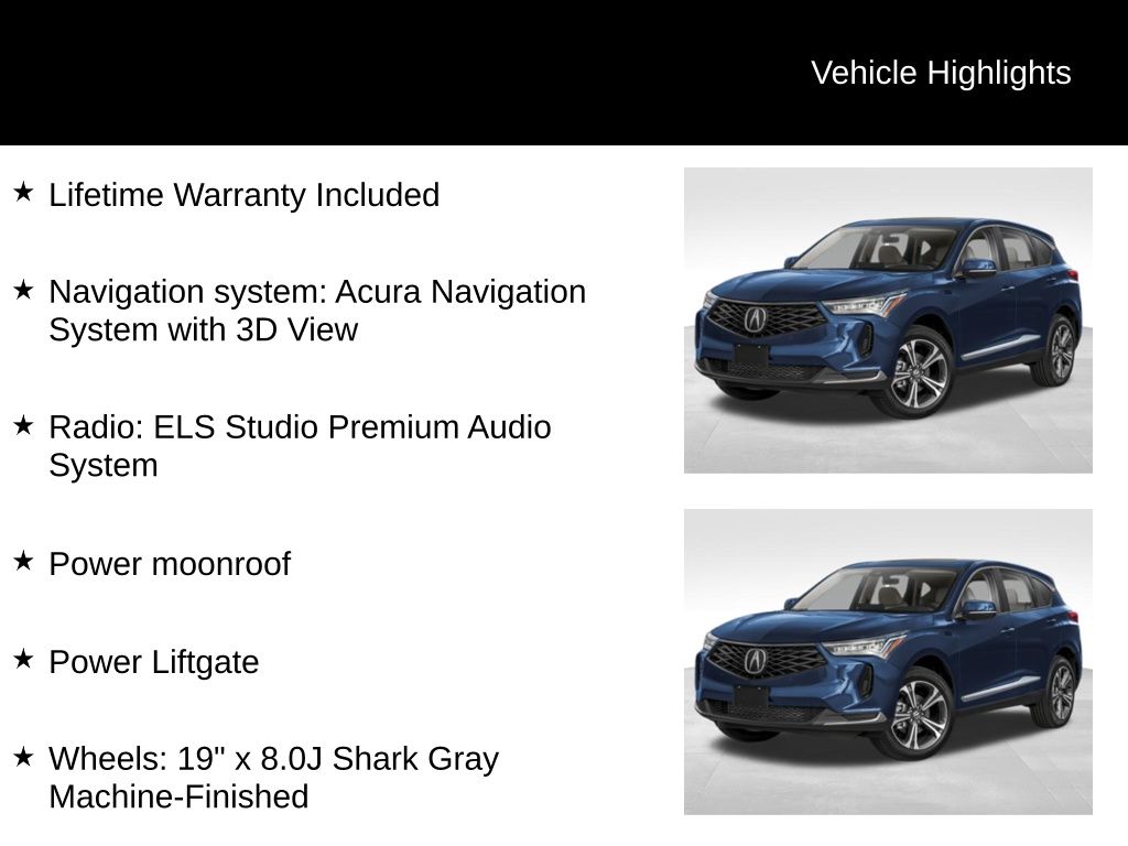 Step inside and be captivated by the RDX's refined interior, featuring Perforated Milano Premium Leather-Trimmed seats, heated front sport seats, and a power-adjustable driver's seat with memory function. The advanced Acura Navigation System with 3D View ensures you'll always arrive at your destination with confidence, while the ELS Studio Premium Audio System delivers an immersive listening experience.