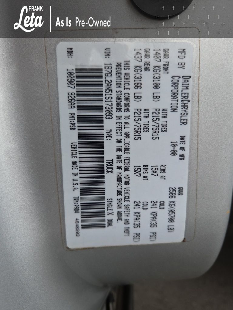 - VIN : 1B7GL2AN51S173093