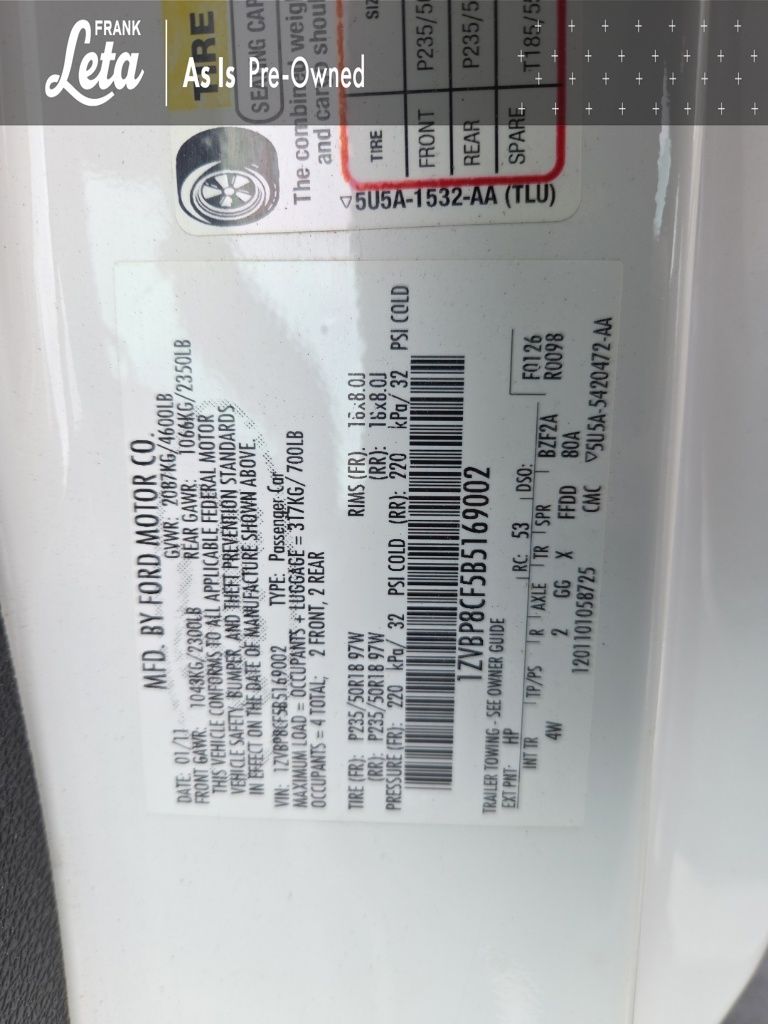 - VIN : 1ZVBP8CF5B5169002