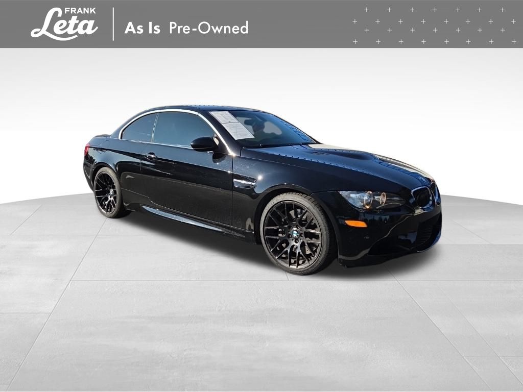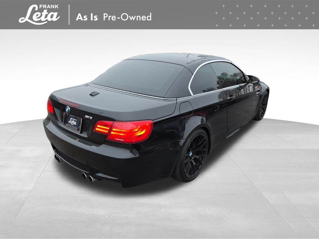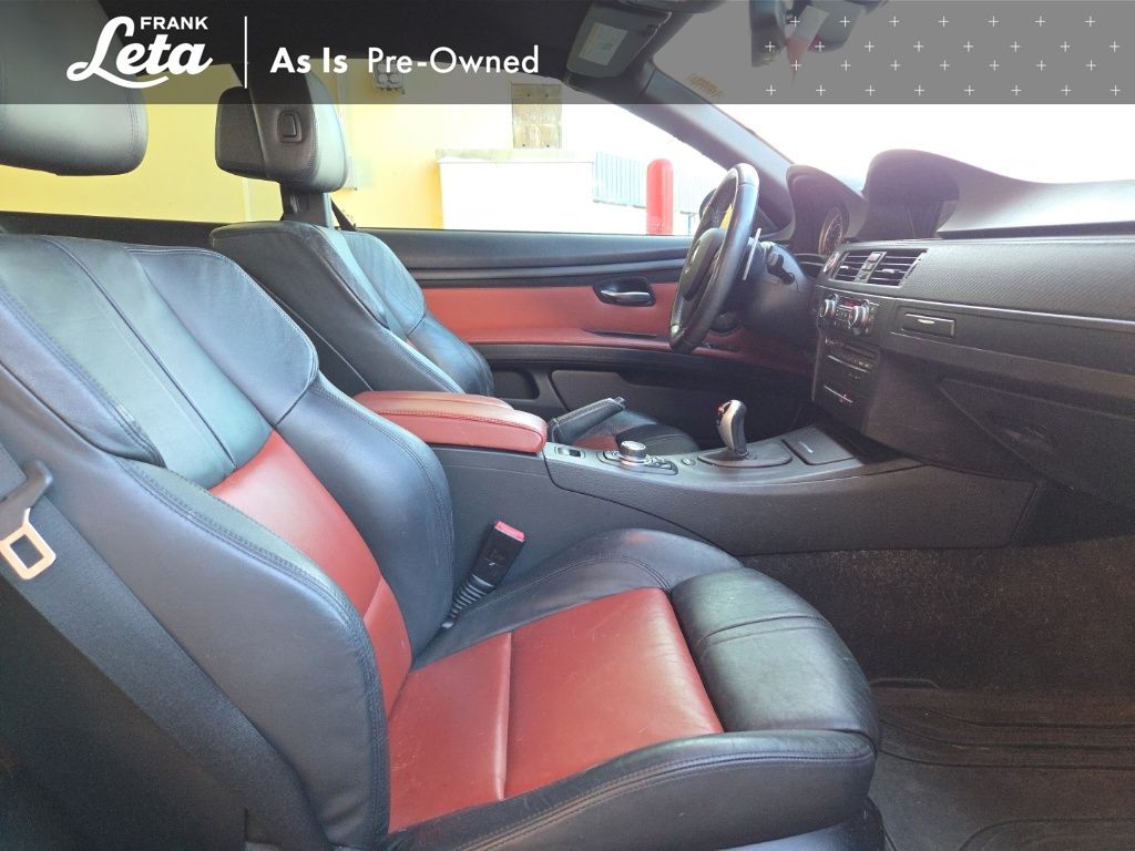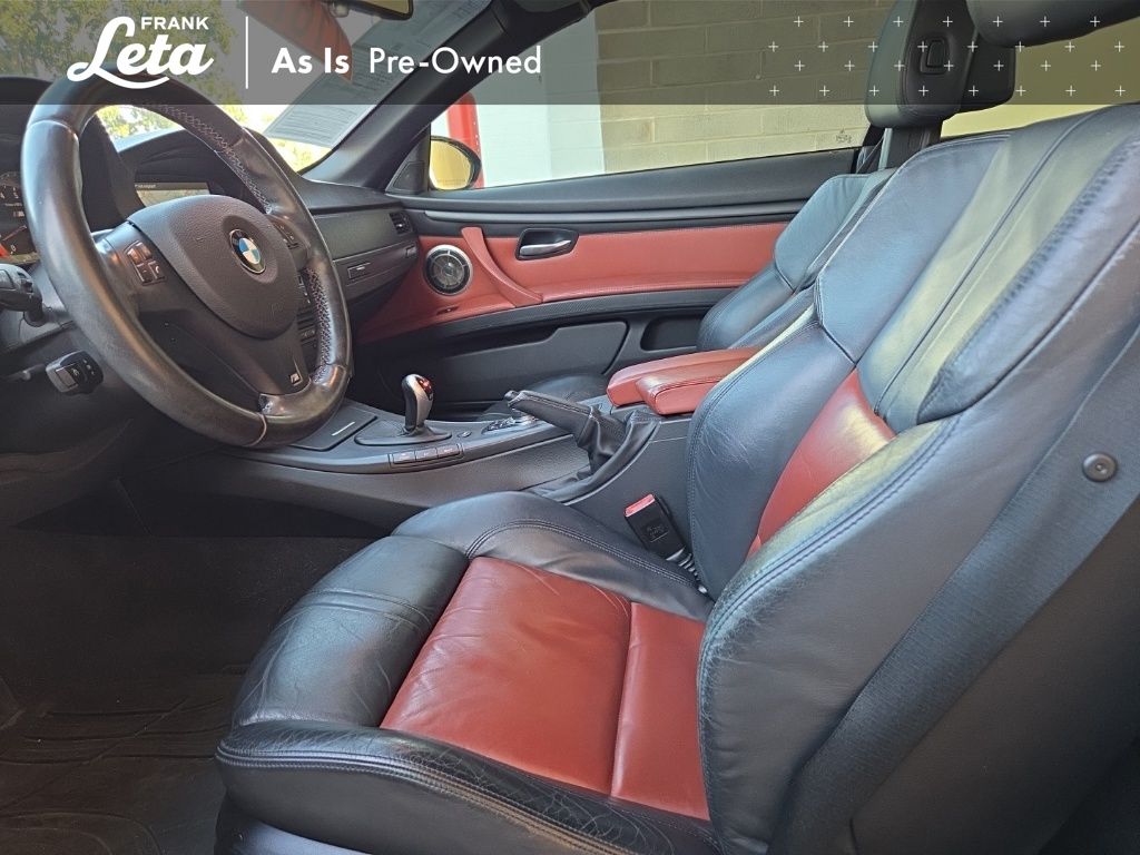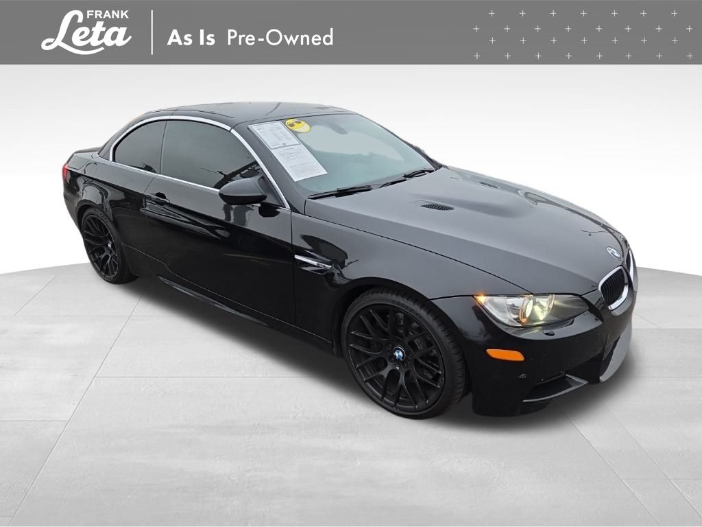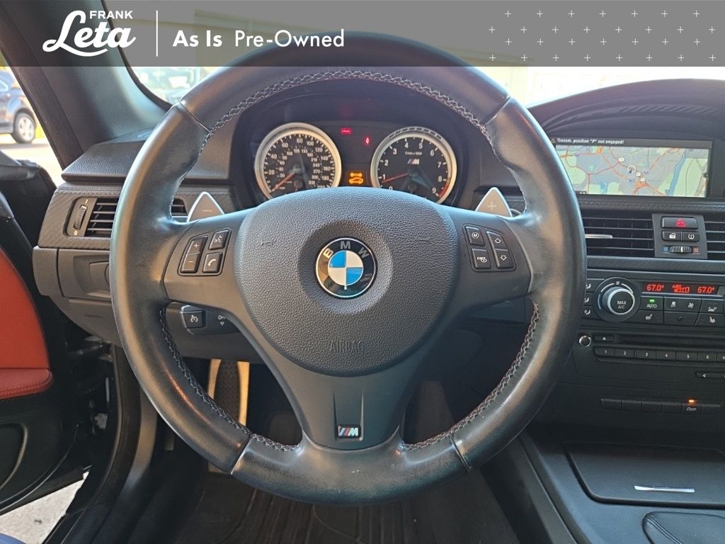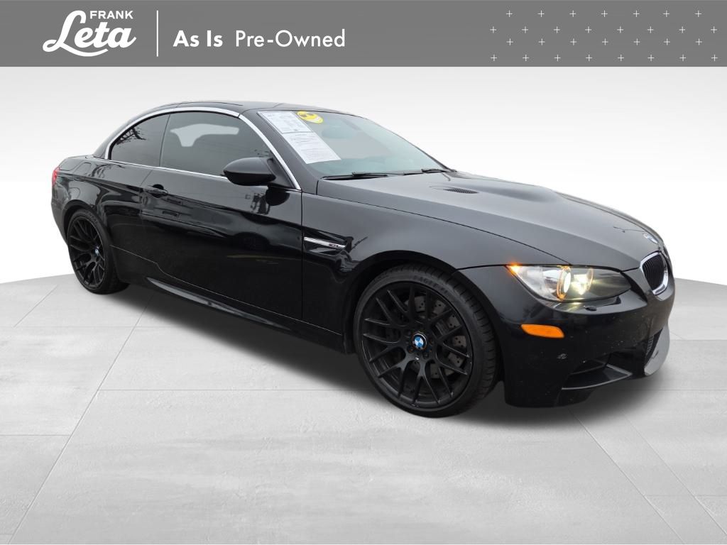 2013 BMW M3 Jet Black 2D Convertible, 4.0L V8 32V, RWD, Jet Black, Fox Red w/Extended Novillo Leather Upholstery, BMW Assist w/Enhanced Bluetooth & USB, Convertible HardTop, Hands-Free Bluetooth, iPod & USB Adapter, Navigation System, Online Information Services, Real Time Traffic Information, Voice-Command, Wheels: 18" x 8.5" Fr/18" x 9.5" Rr (DISC), Wheels: 18" x 8.5" Fr/18" x 9.5" Rr (Style 260M), 10 Speakers, 4-Wheel Disc Brakes, ABS brakes, Air Conditioning, Alloy wheels, AM/FM radio, AM/FM Stereo w/CD/MP3 Capability, Anti-whiplash front head restraints, Auto-dimming Rear-View mirror, Automatic High Beams, Automatic temperature control, BMW Apps, Brake assist, Bumpers: body-color, Carbon Leather Interior Trim, CD player, Combox Controller, Comfort Access Keyless Entry, Convertible roof lining, Delay-off headlights, Driver door bin, Driver vanity mirror, Dual front impact airbags, Dual front side impact airbags, Dynamic Damper Control, Electronic Stability Control, Emergency communication system: BMW Assist, Four wheel independent suspension, Front anti-roll bar, Front Bucket Seats, Front Center Armrest, Front dual zone A/C, Front reading lights, Fully automatic headlights, Glass rear window, Heated door mirrors, Heated Front Seats (3-Stage), High intensity discharge headlights: Bi-xenon, Illuminated entry, Integrated roll-over protection, Interior Mirror w/Compass, Knee airbag, Leather Shift Knob, Leather steering wheel, Low tire pressure warning, Memory seat, Novillo Leather Upholstery, Occupant sensing airbag, Outside temperature display, Panic alarm, Park Distance Control (Rear Only), Passenger door bin, Passenger vanity mirror, Power convertible roof, Power door mirrors, Power driver seat, Power Folding Auto Mirrors, Power passenger seat, Power steering, Power windows, Power-Adjustable Front M Sport Seats, Radio data system, Rain sensing wipers, Rear air conditioning, Rear anti-roll bar, Rear reading lights, Rear seat center armrest, Rear window defroster, Remote keyless entry, Retractable Headlight Washers, Security system, SIRIUS Satellite Radio, Speed control, Speed-sensing steering, Speed-Sensitive Wipers, Sport steering wheel, Steering wheel mounted A/C controls, Steering wheel mounted audio controls, Tachometer, Telescoping steering wheel, Through-Loading System w/Integrated Transport Bag, Tilt steering wheel, Traction control, Trip computer, Universal Garage-Door Opener, Variably intermittent wipers, 2D Convertible, 4.0L V8 32V, RWD, Jet Black, Fox Red w/Extended Novillo Leather Upholstery, BMW Assist w/Enhanced Bluetooth & USB, Convertible HardTop, Hands-Free Bluetooth, iPod & USB Adapter, Navigation System, Online Information Services, Real Time Traffic Information, Voice-Command, Wheels: 18" x 8.5" Fr/18" x 9.5" Rr (DISC), Wheels: 18" x 8.5" Fr/18" x 9.5" Rr (Style 260M). 4.0L V8 32V 7-Speed Automatic RWD 2D Convertible Awards: