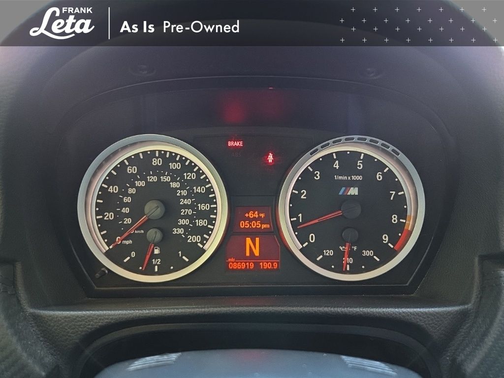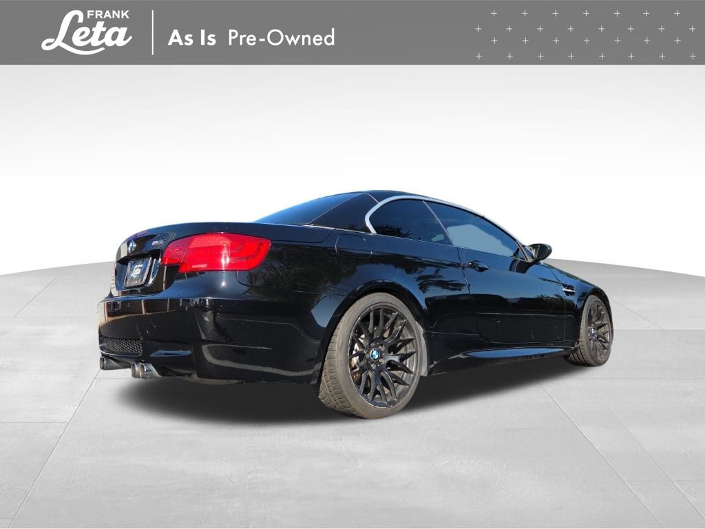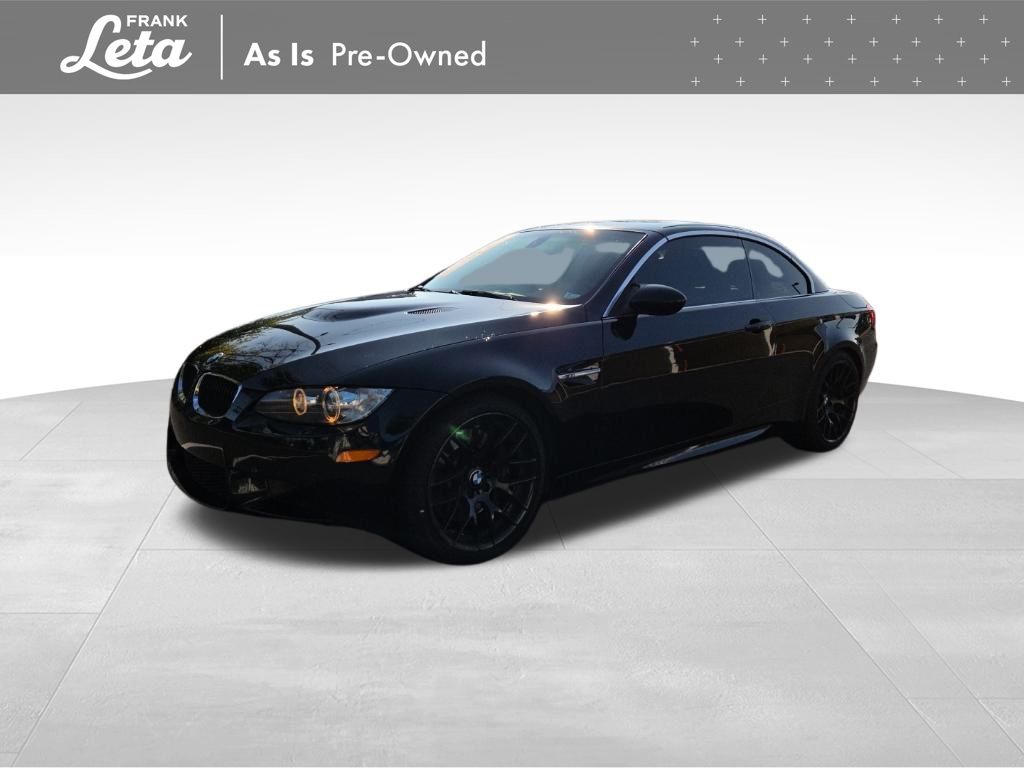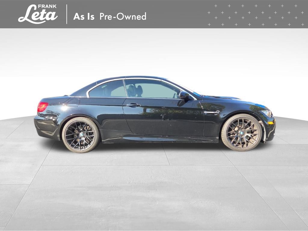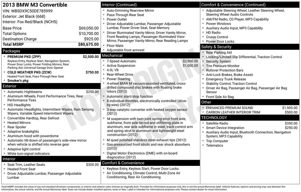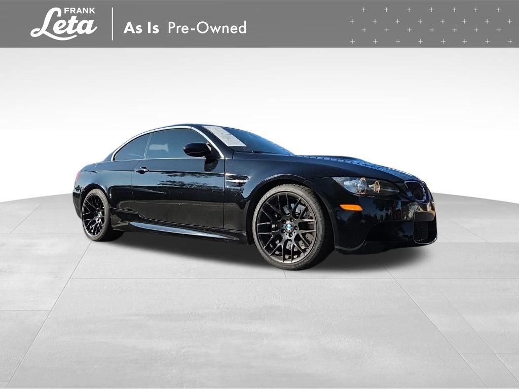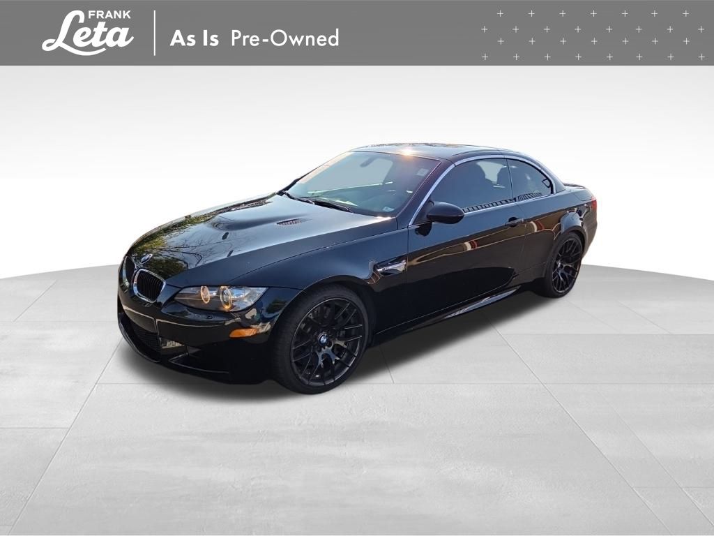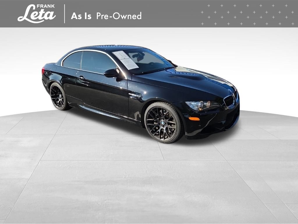 2013 BMW M3 Jet Black 2D Convertible, 4.0L V8 32V, RWD, Jet Black, Fox Red w/Extended Novillo Leather Upholstery, BMW Assist w/Enhanced Bluetooth & USB, Convertible HardTop, Hands-Free Bluetooth, iPod & USB Adapter, Navigation System, Online Information Services, Real Time Traffic Information, Voice-Command, Wheels: 18" x 8.5" Fr/18" x 9.5" Rr (DISC), Wheels: 18" x 8.5" Fr/18" x 9.5" Rr (Style 260M), 10 Speakers, 4-Wheel Disc Brakes, ABS brakes, Air Conditioning, Alloy wheels, AM/FM radio, AM/FM Stereo w/CD/MP3 Capability, Anti-whiplash front head restraints, Auto-dimming Rear-View mirror, Automatic High Beams, Automatic temperature control, BMW Apps, Brake assist, Bumpers: body-color, Carbon Leather Interior Trim, CD player, Combox Controller, Comfort Access Keyless Entry, Convertible roof lining, Delay-off headlights, Driver door bin, Driver vanity mirror, Dual front impact airbags, Dual front side impact airbags, Dynamic Damper Control, Electronic Stability Control, Emergency communication system: BMW Assist, Four wheel independent suspension, Front anti-roll bar, Front Bucket Seats, Front Center Armrest, Front dual zone A/C, Front reading lights, Fully automatic headlights, Glass rear window, Heated door mirrors, Heated Front Seats (3-Stage), High intensity discharge headlights: Bi-xenon, Illuminated entry, Integrated roll-over protection, Interior Mirror w/Compass, Knee airbag, Leather Shift Knob, Leather steering wheel, Low tire pressure warning, Memory seat, Novillo Leather Upholstery, Occupant sensing airbag, Outside temperature display, Panic alarm, Park Distance Control (Rear Only), Passenger door bin, Passenger vanity mirror, Power convertible roof, Power door mirrors, Power driver seat, Power Folding Auto Mirrors, Power passenger seat, Power steering, Power windows, Power-Adjustable Front M Sport Seats, Radio data system, Rain sensing wipers, Rear air conditioning, Rear anti-roll bar, Rear reading lights, Rear seat center armrest, Rear window defroster, Remote keyless entry, Retractable Headlight Washers, Security system, SIRIUS Satellite Radio, Speed control, Speed-sensing steering, Speed-Sensitive Wipers, Sport steering wheel, Steering wheel mounted A/C controls, Steering wheel mounted audio controls, Tachometer, Telescoping steering wheel, Through-Loading System w/Integrated Transport Bag, Tilt steering wheel, Traction control, Trip computer, Universal Garage-Door Opener, Variably intermittent wipers, 2D Convertible, 4.0L V8 32V, RWD, Jet Black, Fox Red w/Extended Novillo Leather Upholstery, BMW Assist w/Enhanced Bluetooth & USB, Convertible HardTop, Hands-Free Bluetooth, iPod & USB Adapter, Navigation System, Online Information Services, Real Time Traffic Information, Voice-Command, Wheels: 18" x 8.5" Fr/18" x 9.5" Rr (DISC), Wheels: 18" x 8.5" Fr/18" x 9.5" Rr (Style 260M). 4.0L V8 32V 7-Speed Automatic RWD 2D Convertible Awards: