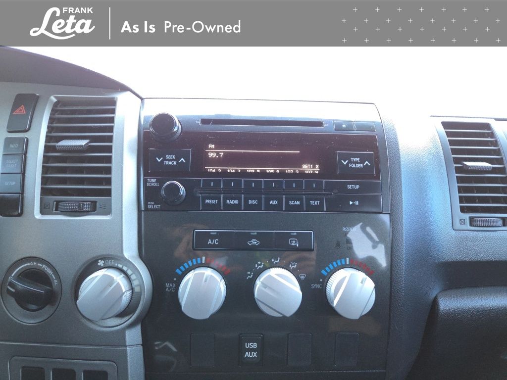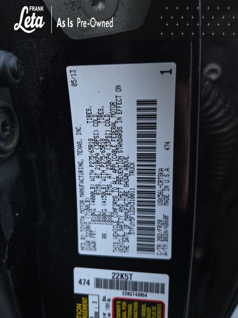 2013 Toyota Tundra Grade Black i-Force 5.7L V8 DOHC 32V LEV, 4WD, Graphite w/Fabric Seat Trim or Heavy Duty Vinyl Seat Trim w/Work Truck, 18" x 8J 5-Spoke Aluminum Disc Wheels, Heated door mirrors, 3-Passenger Front Bench Seat, 4-Wheel Disc Brakes, 4.10 Axle Ratio, 6 Speakers, ABS brakes, Air Conditioning, AM/FM radio, AM/FM w/CD Player, Brake assist, Bumpers: chrome, CD player, Driver door bin, Driver vanity mirror, Dual front impact airbags, Dual front side impact airbags, Electronic Stability Control, Fabric Seat Trim, Front anti-roll bar, Front Bucket Seats, Front Center Armrest w/Storage, Front dual zone A/C, Front reading lights, Front wheel independent suspension, Illuminated entry, Knee airbag, Low tire pressure warning, Occupant sensing airbag, Outside temperature display, Overhead airbag, Overhead console, Panic alarm, Passenger door bin, Passenger vanity mirror, Power door mirrors, Power steering, Power windows, Rear reading lights, Rear step bumper, Remote keyless entry, Speed control, Speed-sensing steering, Split folding rear seat, Tachometer, Tilt steering wheel, Traction control, Variably intermittent wipers, Voltmeter, i-Force 5.7L V8 DOHC 32V LEV, 4WD, Graphite w/Fabric Seat Trim or Heavy Duty Vinyl Seat Trim w/Work Truck, 18" x 8J 5-Spoke Aluminum Disc Wheels, Heated door mirrors. i-Force 5.7L V8 DOHC 32V LEV 6-Speed Automatic Electronic with Overdrive 4WD 4D Double Cab Odometer is 53181 miles below market average! Awards: