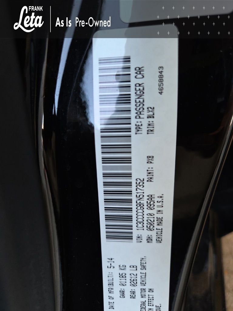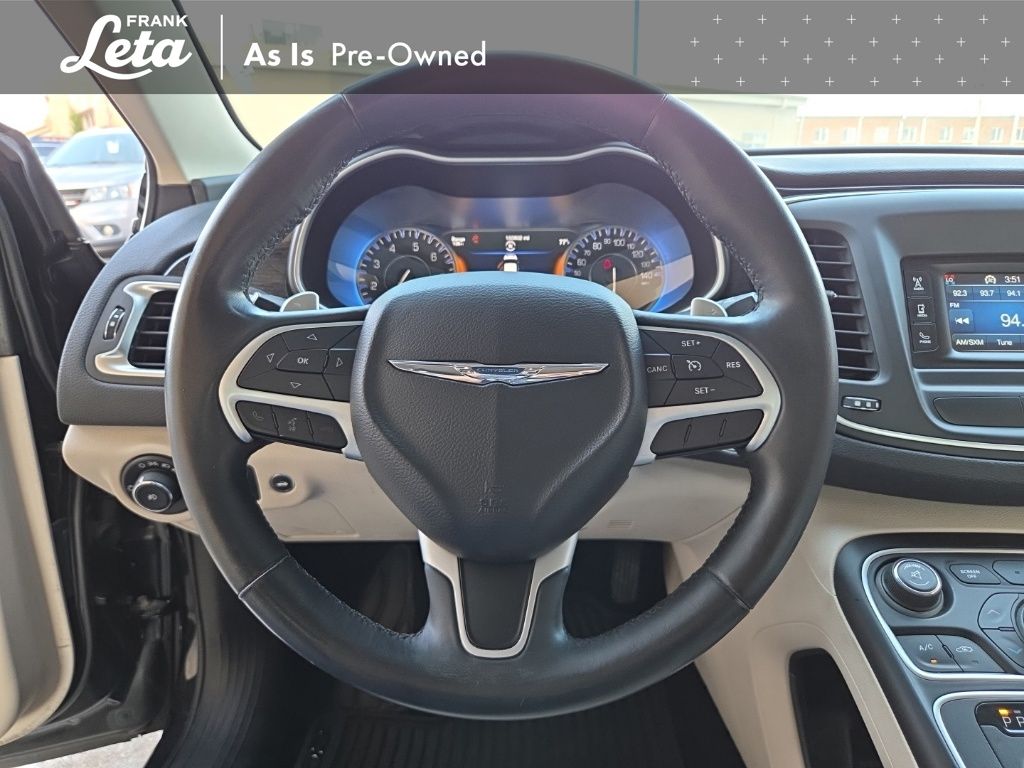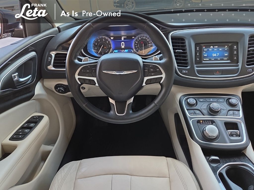2015 Chrysler 200 C Black Clearcoat 200 C, 3.6L V6 24V VVT, Black Clearcoat, Linen/Black w/Leather Trimmed Bucket Seats or Premium Leather Trimmed Ventilated Seats, Auto-dimming Rear-View mirror, Front dual zone A/C, Front fog lights, Fully automatic headlights, Garage door transmitter, Heated front seats, ParkView Rear Back-Up Camera, Uconnect Voice Command w/Bluetooth, Wheels: 17" x 7.5" Satin Silver Aluminum, 4-Wheel Disc Brakes, 6 Speakers, ABS brakes, Accessory Switch Bank, Air Conditioning, AM/FM radio: SiriusXM, Anti-whiplash front head restraints, Automatic temperature control, Brake assist, Bumpers: body-color, Compass, Delay-off headlights, Driver door bin, Driver vanity mirror, Dual front impact airbags, Dual front side impact airbags, Electronic Stability Control, Four wheel independent suspension, Front anti-roll bar, Front Bucket Seats, Front Center Armrest, Front reading lights, Heated door mirrors, Illuminated entry, Integrated Voice Command w/Bluetooth, Knee airbag, Leather Trimmed Bucket Seats, Low tire pressure warning, Occupant sensing airbag, Outside temperature display, Overhead airbag, Overhead console, Panic alarm, Passenger door bin, Passenger vanity mirror, Power door mirrors, Power driver seat, Power passenger seat, Power steering, Power windows, Quick Order Package 26N, Radio data system, Radio: Uconnect 5.0 AM/FM/BT, Rear anti-roll bar, Rear seat center armrest, Rear window defroster, Remote keyless entry, Security system, SIRIUSXM Satellite Radio, Speed control, Speed-sensing steering, Speed-Sensitive Wipers, Split folding rear seat, Steering wheel mounted audio controls, Tachometer, Telescoping steering wheel, Tilt steering wheel, Traction control, Trip computer, Turn signal indicator mirrors, Variably intermittent wipers, 200 C, 3.6L V6 24V VVT, Black Clearcoat, Linen/Black w/Leather Trimmed Bucket Seats or Premium Leather Trimmed Ventilated Seats, Auto-dimming Rear-View mirror, Front dual zone A/C, Front fog lights, Fully automatic headlights, Garage door transmitter, Heated front seats, ParkView Rear Back-Up Camera, Uconnect Voice Command w/Bluetooth, Wheels: 17" x 7.5" Satin Silver Aluminum. 3.6L V6 24V VVT 9-Speed Automatic FWD 4D Sedan Odometer is 9185 miles below market average! 19/32 City/Highway MPG Awards: