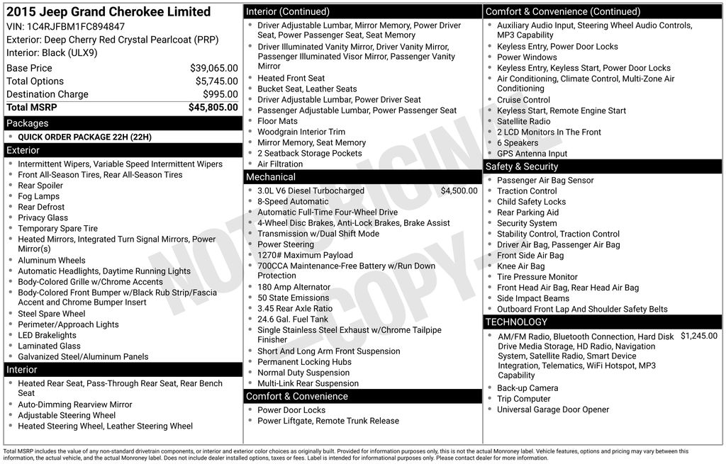 Whether you're embarking on a family adventure or seeking a premium daily driver, this 2015 Jeep Grand Cherokee Limited is an exceptional choice. Its blend of power, technology, and luxury make it a standout in the midsize SUV segment. We invite you to experience this remarkable vehicle firsthand by scheduling a test drive at our dealership.