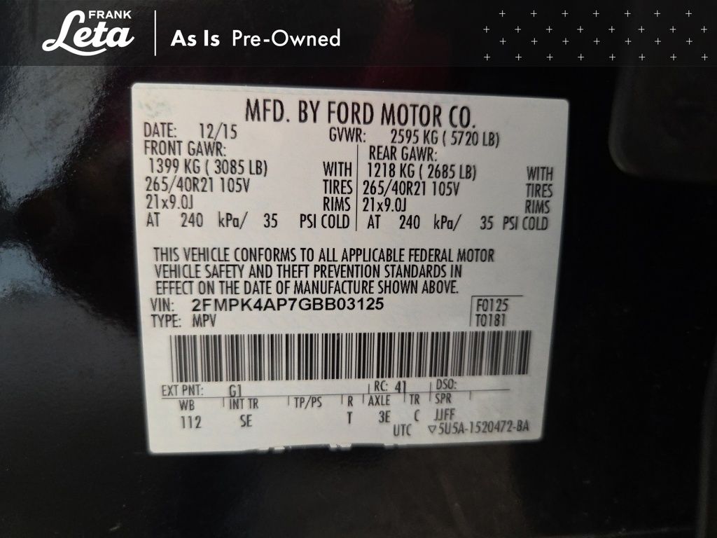2016 Ford Edge Sport Shadow Black Edge Sport, 2.7L V6 EcoBoost, AWD, Shadow Black, Ebony w/Perforated Leather Trimmed Heated/Cooled Buckets, 12 Speakers, Auto-dimming Rear-View mirror, Exterior Parking Camera Rear, Front dual zone A/C, Fully automatic headlights, Garage door transmitter, Heated front seats, Memory seat, Power Liftgate, Premium audio system: Sony, Rear Parking Sensors, Wheels: 20" Polished w/Magn Low Gloss Ptd Pockets, 4-Wheel Disc Brakes, ABS brakes, Air Conditioning, AM/FM radio: SiriusXM, AM/FM Stereo w/Single CD Player, Automatic temperature control, Axle Ratio: 3.39, Brake assist, Bumpers: body-color, CD player, Compass, Delay-off headlights, Driver door bin, Driver vanity mirror, Dual front impact airbags, Dual front side impact airbags, Electronic Stability Control, Emergency communication system, Four wheel independent suspension, Front anti-roll bar, Front Bucket Seats, Front Center Armrest w/Storage, Front reading lights, Heated door mirrors, Illuminated entry, Knee airbag, Leather Shift Knob, Low tire pressure warning, Occupant sensing airbag, Outside temperature display, Overhead airbag, Overhead console, Panic alarm, Passenger door bin, Passenger vanity mirror, Perforated Leather-Trimmed Heated Sport Buckets, Power door mirrors, Power driver seat, Power passenger seat, Power steering, Power windows, Rear anti-roll bar, Rear reading lights, Rear seat center armrest, Rear window defroster, Rear window wiper, Remote keyless entry, Security system, SiriusXM Radio, Speed control, Speed-sensing steering, Speed-Sensitive Wipers, Split folding rear seat, Spoiler, Steering wheel memory, Steering wheel mounted audio controls, SYNC 3, Tachometer, Telescoping steering wheel, Tilt steering wheel, Traction control, Trip computer, Turn signal indicator mirrors, Variably intermittent wipers, Edge Sport, 2.7L V6 EcoBoost, AWD, Shadow Black, Ebony w/Perforated Leather Trimmed Heated/Cooled Buckets, 12 Speakers, Auto-dimming Rear-View mirror, Exterior Parking Camera Rear, Front dual zone A/C, Fully automatic headlights, Garage door transmitter, Heated front seats, Memory seat, Power Liftgate, Premium audio system: Sony, Rear Parking Sensors, Wheels: 20" Polished w/Magn Low Gloss Ptd Pockets. 2.7L V6 EcoBoost 6-Speed Automatic AWD 4D Sport Utility Awards: