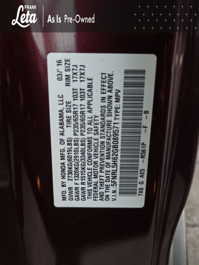 2016 Honda Odyssey EX-L Deep Scarlet Pearl Odyssey EX-L, 3.5L V6 SOHC i-VTEC 24V, Deep Scarlet Pearl, Beige w/Leather Seat Trim, 17" x 7" Alloy Wheels, 3rd row seats: split-bench, Auto-dimming Rear-View mirror, Exterior Parking Camera Rear, Front dual zone A/C, Fully automatic headlights, Garage door transmitter: HomeLink, Heated front seats, Power Liftgate, Power moonroof, Rear air conditioning, 4-Wheel Disc Brakes, 4.25 Axle Ratio, 7 Speakers, ABS brakes, Air Conditioning, AM/FM radio: SiriusXM, Anti-whiplash front head restraints, Automatic temperature control, Brake assist, Bumpers: body-color, CD player, Compass, Delay-off headlights, Driver door bin, Driver vanity mirror, Driver's Seat Mounted Armrest, Dual front impact airbags, Dual front side impact airbags, Electronic Stability Control, Four wheel independent suspension, Front anti-roll bar, Front Bucket Seats, Front reading lights, Heated door mirrors, Heated Front Bucket Seats, Illuminated entry, Leather Seat Trim, Leather Shift Knob, Leather steering wheel, Low tire pressure warning, Occupant sensing airbag, Outside temperature display, Overhead airbag, Overhead console, Panic alarm, Passenger door bin, Passenger seat mounted armrest, Passenger vanity mirror, Power door mirrors, Power driver seat, Power passenger seat, Power steering, Power windows, Radio data system, Radio: 270-Watt AM/FM/CD Audio System w/7 Speakers, Rear reading lights, Rear seat center armrest, Rear window defroster, Rear window wiper, Reclining 3rd row seat, Remote keyless entry, Security system, Speed control, Speed-sensing steering, Speed-Sensitive Wipers, Split folding rear seat, Spoiler, Steering wheel mounted audio controls, Tachometer, Telescoping steering wheel, Tilt steering wheel, Traction control, Trip computer, Variably intermittent wipers, Odyssey EX-L, 3.5L V6 SOHC i-VTEC 24V, Deep Scarlet Pearl, Beige w/Leather Seat Trim, 17" x 7" Alloy Wheels, 3rd row seats: split-bench, Auto-dimming Rear-View mirror, Exterior Parking Camera Rear, Front dual zone A/C, Fully automatic headlights, Garage door transmitter: HomeLink, Heated front seats, Power Liftgate, Power moonroof, Rear air conditioning. 3.5L V6 SOHC i-VTEC 24V 6-Speed Automatic FWD 4D Passenger Van Odometer is 16058 miles below market average! 19/28 City/Highway MPG Awards: