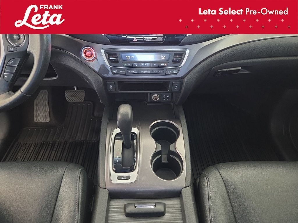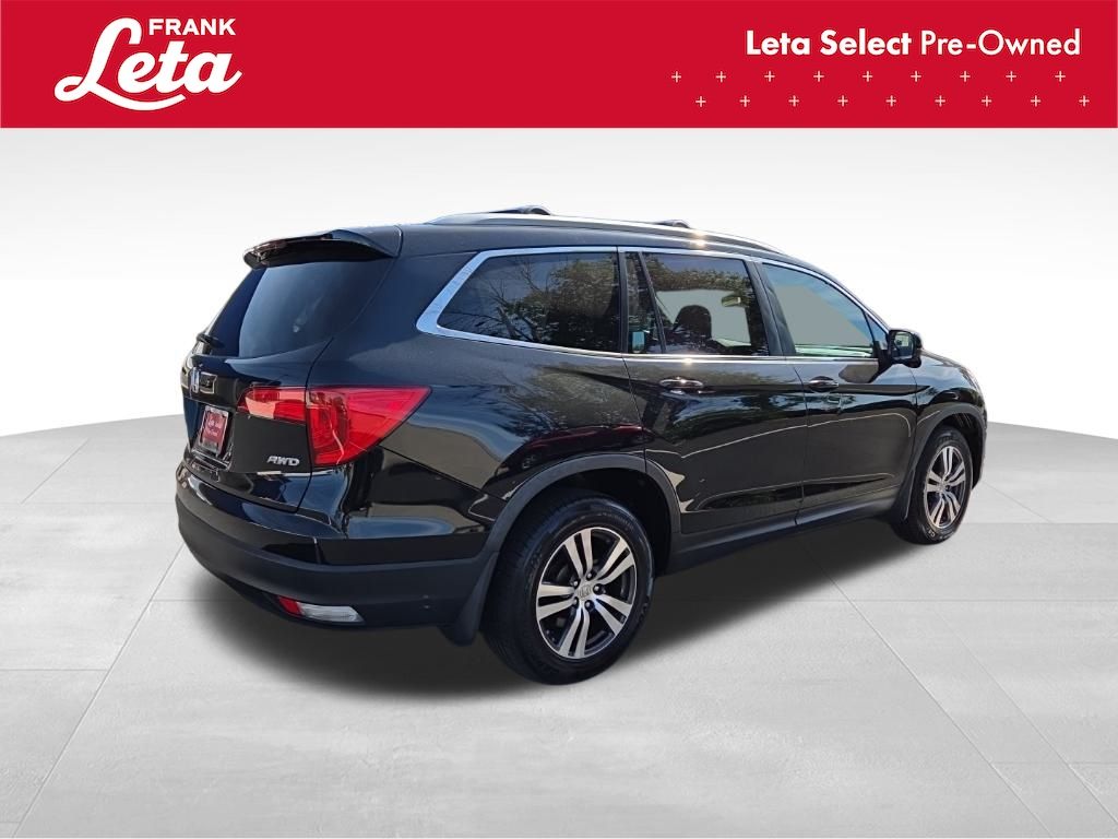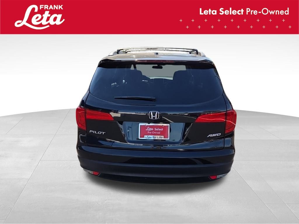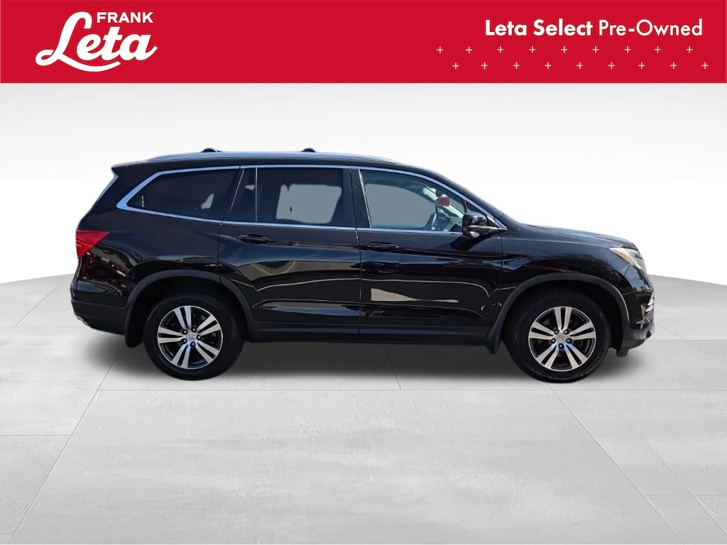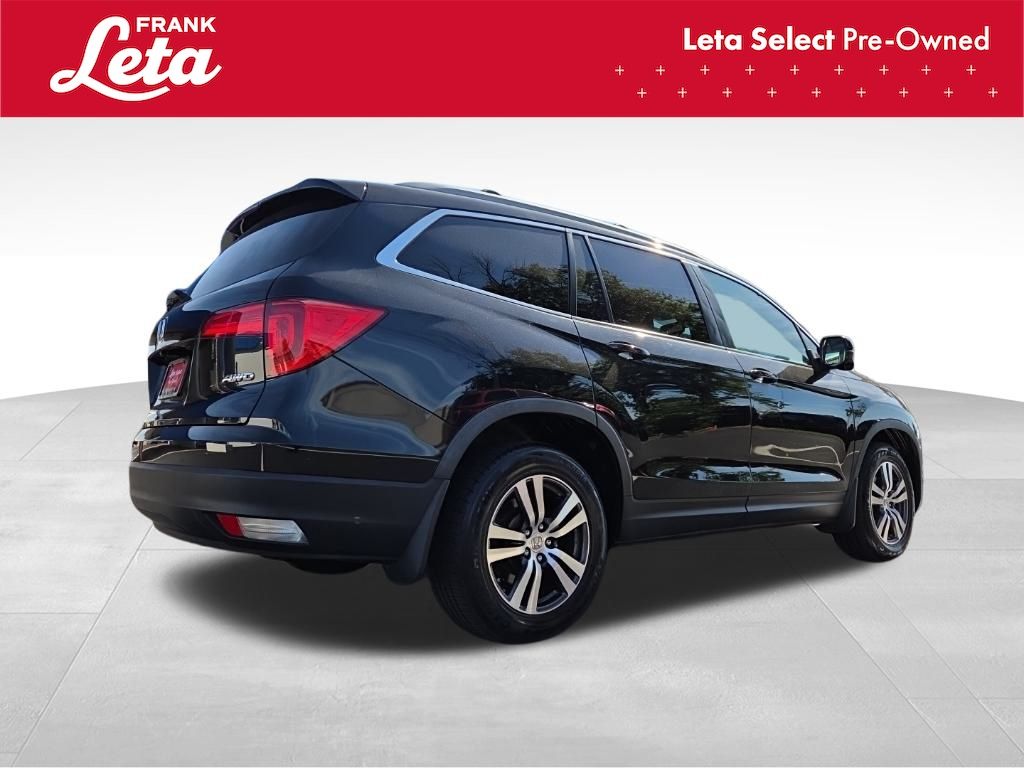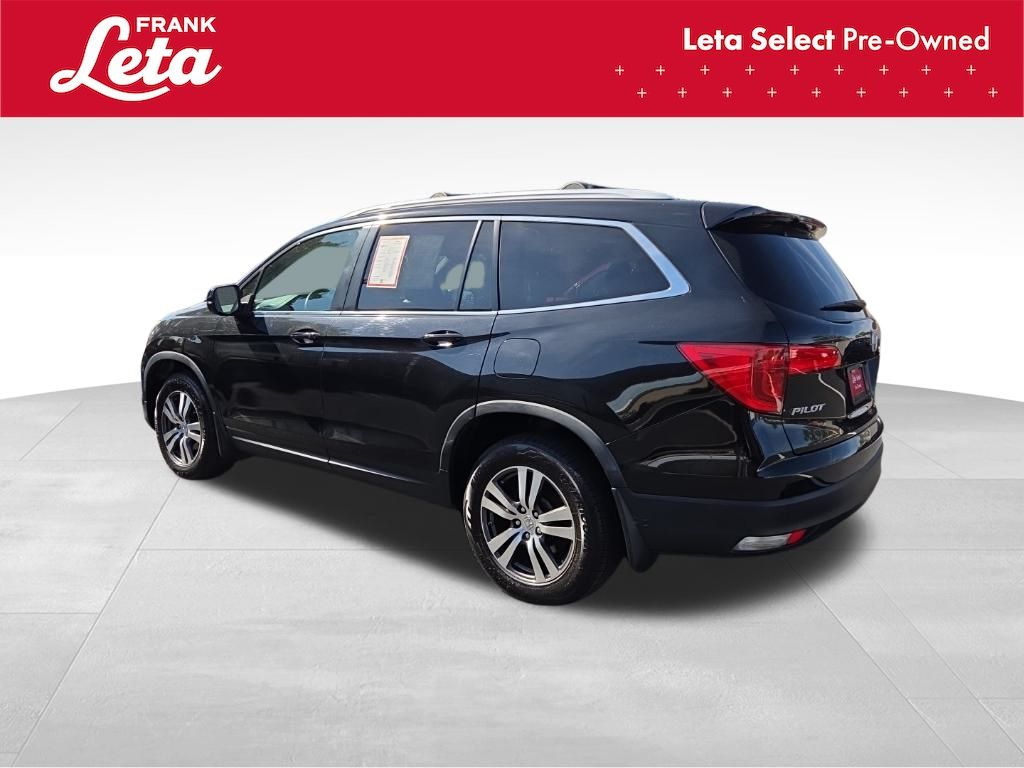 CARFAX One-Owner. 2016 Honda Pilot EX-L w/Honda Sensing Crystal Black Pearl Pilot EX-L w/Honda Sensing, Frank Leta Select Certified, 3.5L V6 24V SOHC i-VTEC, AWD, Crystal Black Pearl, Black w/Leather-Trimmed Seats, 18" Alloy Wheels, 3rd row seats: split-bench, Auto-dimming Rear-View mirror, Exterior Parking Camera Rear, Front fog lights, Fully automatic headlights, Garage door transmitter: HomeLink, Heated front seats, Leather-Trimmed Seats, Power Liftgate, Power moonroof, Trip computer, 4-Wheel Disc Brakes, 4.25 Axle Ratio, 7 Speakers, ABS brakes, Air Conditioning, AM/FM radio: SiriusXM, Auto High-beam Headlights, Automatic temperature control, Brake assist, Bumpers: body-color, Compass, Delay-off headlights, Driver door bin, Driver vanity mirror, Dual front impact airbags, Dual front side impact airbags, Electronic Stability Control, Emergency communication system: HondaLink Assist, Four wheel independent suspension, Front anti-roll bar, Front Bucket Seats, Front Center Armrest, Front dual zone A/C, Front reading lights, Heated door mirrors, Heated Front Bucket Seats, Illuminated entry, Leather Shift Knob, Low tire pressure warning, Occupant sensing airbag, Outside temperature display, Overhead airbag, Overhead console, Panic alarm, Passenger door bin, Passenger vanity mirror, Power door mirrors, Power driver seat, Power passenger seat, Power steering, Power windows, Radio data system, Radio: AM/FM Audio System, Rear air conditioning, Rear anti-roll bar, Rear reading lights, Rear seat center armrest, Rear window defroster, Rear window wiper, Remote keyless entry, Security system, SiriusXM Radio, Speed control, Speed-sensing steering, Speed-Sensitive Wipers, Split folding rear seat, Spoiler, Steering wheel mounted audio controls, Tachometer, Telescoping steering wheel, Tilt steering wheel, Traction control, Variably intermittent wipers, Pilot EX-L w/Honda Sensing, 3.5L V6 24V SOHC i-VTEC, AWD, Crystal Black Pearl, Black w/Leather-Trimmed Seats, 18" Alloy Wheels, 3rd row seats: split-bench, Auto-dimming Rear-View mirror, Exterior Parking Camera Rear, Front fog lights, Fully automatic headlights, Garage door transmitter: HomeLink, Heated front seats, Leather-Trimmed Seats, Power Liftgate, Power moonroof, Trip computer. 3.5L V6 24V SOHC i-VTEC 6-Speed Automatic AWD 4D Sport Utility Odometer is 9723 miles below market average! 18/26 City/Highway MPG Awards: