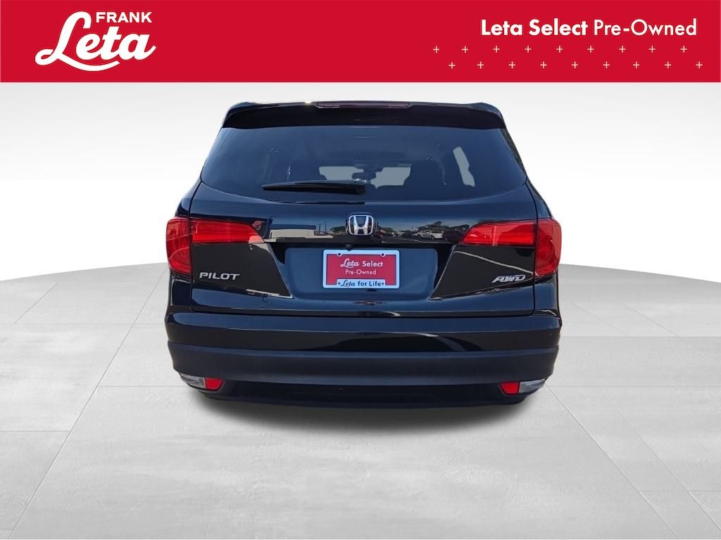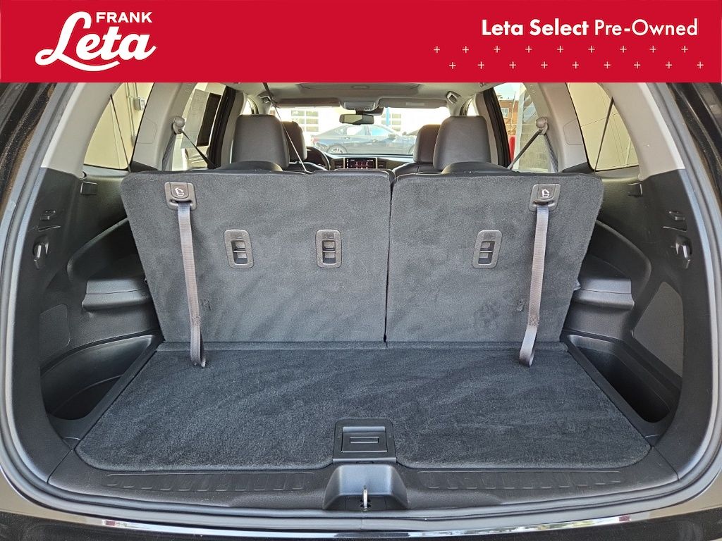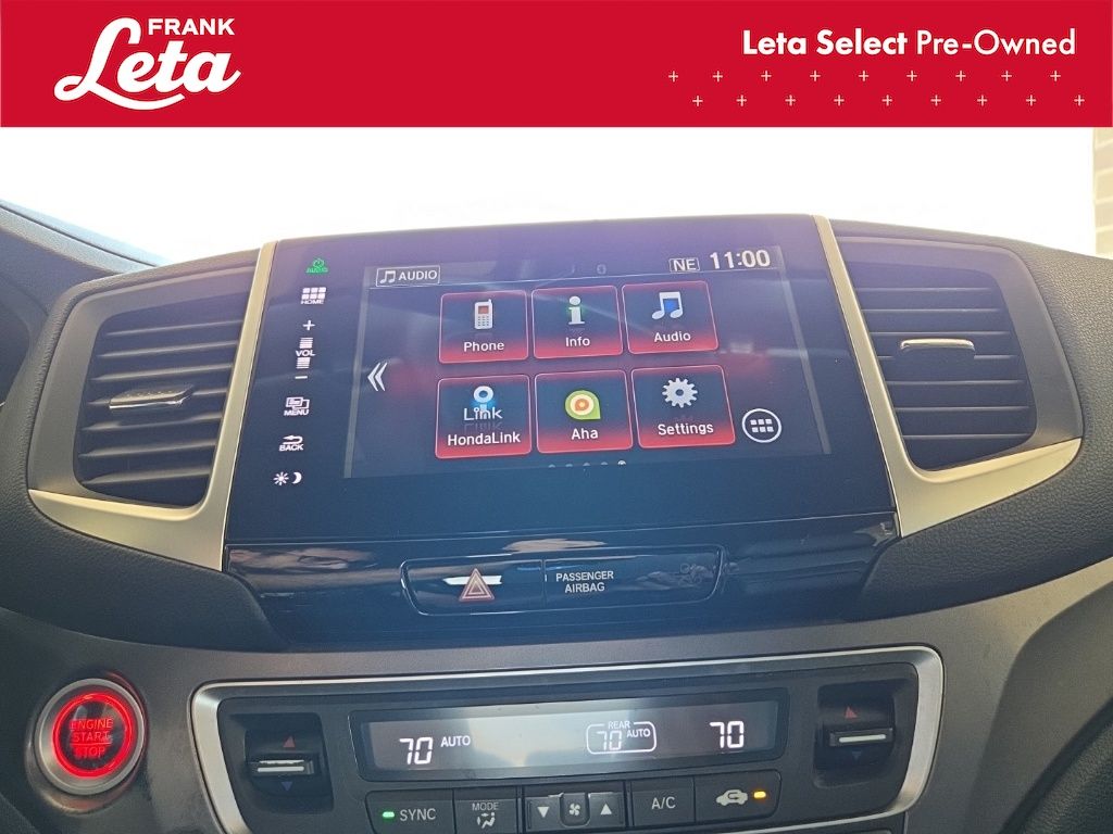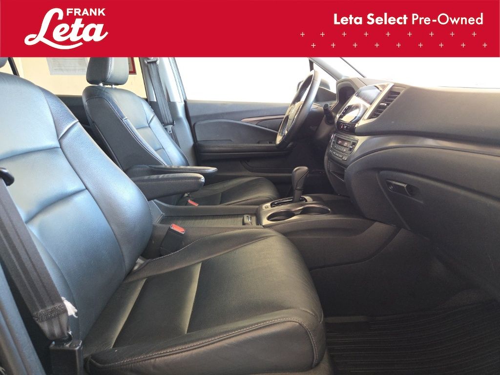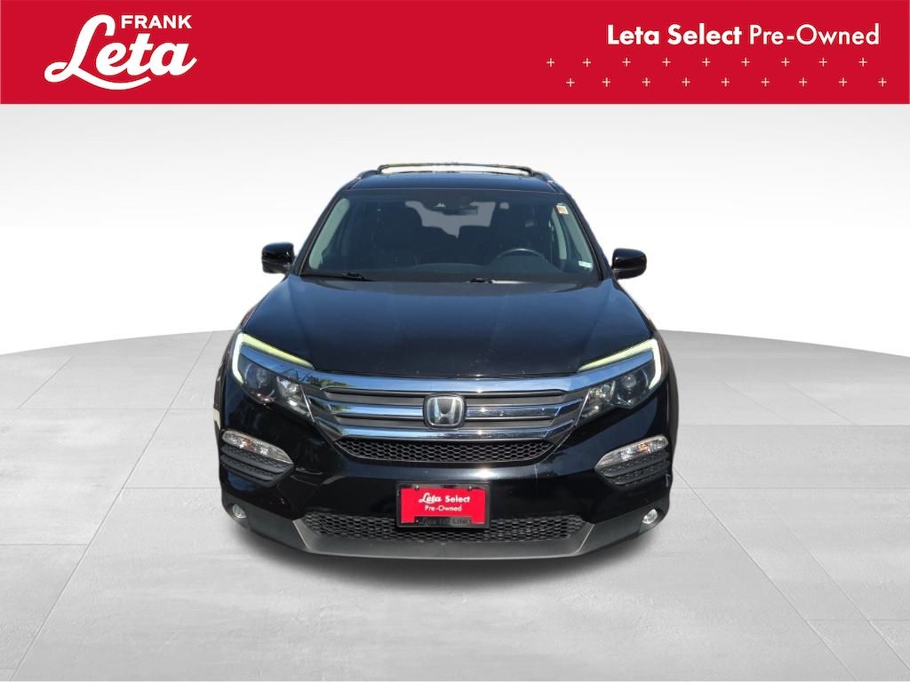 CARFAX One-Owner. 2016 Honda Pilot EX-L w/Honda Sensing Crystal Black Pearl Pilot EX-L w/Honda Sensing, Frank Leta Select Certified, 3.5L V6 24V SOHC i-VTEC, AWD, Crystal Black Pearl, Black w/Leather-Trimmed Seats, 18" Alloy Wheels, 3rd row seats: split-bench, Auto-dimming Rear-View mirror, Exterior Parking Camera Rear, Front fog lights, Fully automatic headlights, Garage door transmitter: HomeLink, Heated front seats, Leather-Trimmed Seats, Power Liftgate, Power moonroof, Trip computer, 4-Wheel Disc Brakes, 4.25 Axle Ratio, 7 Speakers, ABS brakes, Air Conditioning, AM/FM radio: SiriusXM, Auto High-beam Headlights, Automatic temperature control, Brake assist, Bumpers: body-color, Compass, Delay-off headlights, Driver door bin, Driver vanity mirror, Dual front impact airbags, Dual front side impact airbags, Electronic Stability Control, Emergency communication system: HondaLink Assist, Four wheel independent suspension, Front anti-roll bar, Front Bucket Seats, Front Center Armrest, Front dual zone A/C, Front reading lights, Heated door mirrors, Heated Front Bucket Seats, Illuminated entry, Leather Shift Knob, Low tire pressure warning, Occupant sensing airbag, Outside temperature display, Overhead airbag, Overhead console, Panic alarm, Passenger door bin, Passenger vanity mirror, Power door mirrors, Power driver seat, Power passenger seat, Power steering, Power windows, Radio data system, Radio: AM/FM Audio System, Rear air conditioning, Rear anti-roll bar, Rear reading lights, Rear seat center armrest, Rear window defroster, Rear window wiper, Remote keyless entry, Security system, SiriusXM Radio, Speed control, Speed-sensing steering, Speed-Sensitive Wipers, Split folding rear seat, Spoiler, Steering wheel mounted audio controls, Tachometer, Telescoping steering wheel, Tilt steering wheel, Traction control, Variably intermittent wipers, Pilot EX-L w/Honda Sensing, 3.5L V6 24V SOHC i-VTEC, AWD, Crystal Black Pearl, Black w/Leather-Trimmed Seats, 18" Alloy Wheels, 3rd row seats: split-bench, Auto-dimming Rear-View mirror, Exterior Parking Camera Rear, Front fog lights, Fully automatic headlights, Garage door transmitter: HomeLink, Heated front seats, Leather-Trimmed Seats, Power Liftgate, Power moonroof, Trip computer. 3.5L V6 24V SOHC i-VTEC 6-Speed Automatic AWD 4D Sport Utility Odometer is 9723 miles below market average! 18/26 City/Highway MPG Awards: