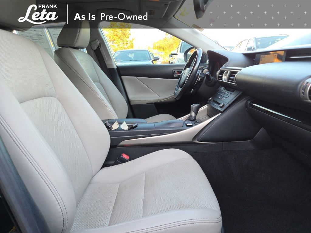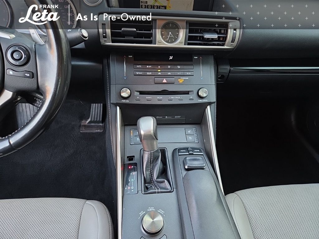 2016 Lexus IS 200t Obsidian IS 200t, 2.0L I4 Turbocharged, Obsidian, Black w/NuLuxe Seat Trim, 17" x 7.5" 10-Spoke Aluminum Alloy Wheels, Auto-dimming Rear-View mirror, Front dual zone A/C, Front fog lights, Fully automatic headlights, Garage door transmitter: HomeLink, High intensity discharge headlights: Bi-Xenon, Power moonroof, 4-Wheel Disc Brakes, 8 Speakers, ABS brakes, Air Conditioning, AM/FM radio: SiriusXM, Automatic temperature control, Brake assist, Bumpers: body-color, CD player, Compass, Delay-off headlights, Driver door bin, Driver vanity mirror, Dual front impact airbags, Dual front side impact airbags, Electronic Stability Control, Emergency communication system: Safety Connect, Four wheel independent suspension, Front anti-roll bar, Front Bucket Seats, Front Center Armrest, Front Power Bucket Seats, Front reading lights, Heated door mirrors, Illuminated entry, Knee airbag, Low tire pressure warning, NuLuxe Seat Trim, Occupant sensing airbag, Outside temperature display, Overhead airbag, Overhead console, Panic alarm, Passenger door bin, Passenger vanity mirror, Power door mirrors, Power driver seat, Power passenger seat, Power steering, Power windows, Radio data system, Radio: Lexus Display Audio, Rear anti-roll bar, Rear reading lights, Rear seat center armrest, Rear side impact airbag, Rear window defroster, Remote keyless entry, Security system, Speed control, Speed-sensing steering, Speed-Sensitive Wipers, Split folding rear seat, Steering wheel mounted audio controls, Tachometer, Telescoping steering wheel, Tilt steering wheel, Traction control, Trip computer, Turn signal indicator mirrors, Variably intermittent wipers, IS 200t, 2.0L I4 Turbocharged, Obsidian, Black w/NuLuxe Seat Trim, 17" x 7.5" 10-Spoke Aluminum Alloy Wheels, Auto-dimming Rear-View mirror, Front dual zone A/C, Front fog lights, Fully automatic headlights, Garage door transmitter: HomeLink, High intensity discharge headlights: Bi-Xenon, Power moonroof. 2.0L I4 Turbocharged 8-Speed Automatic RWD 4D Sedan Odometer is 12427 miles below market average! 22/33 City/Highway MPG Awards: