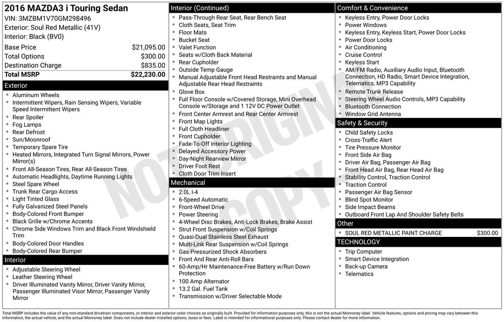 With low mileage and a one-owner CARFAX history, this 2016 Mazda Mazda3 i Touring is an exceptional value. Don't miss your chance to own this well-maintained and fully inspected vehicle. Schedule a test drive today and experience the joy of driving this exceptional compact car.