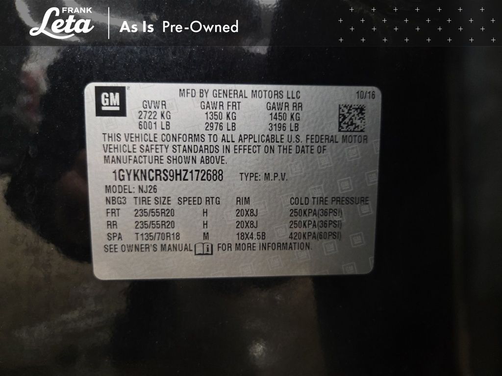 - VIN : 1GYKNCRS9HZ172688