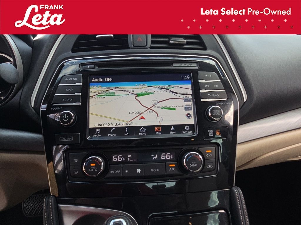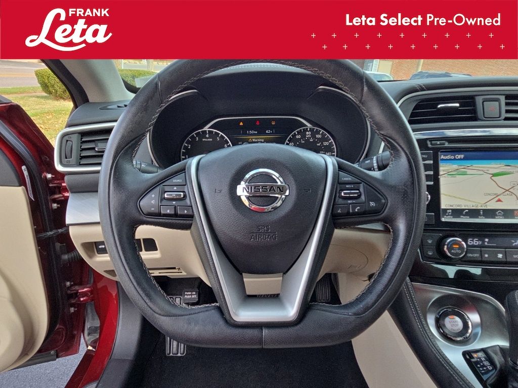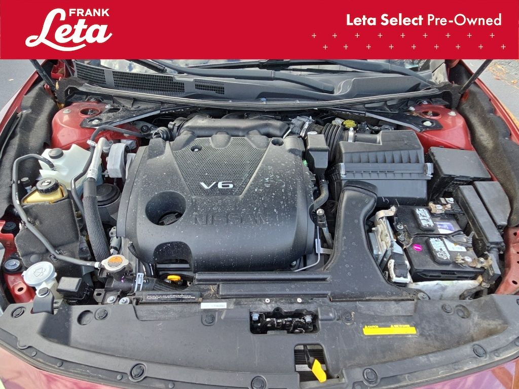 2017 Nissan Maxima 3.5 S Coulis Red Maxima 3.5 S, Frank Leta Select Certified, 3.5L V6 DOHC 24V, Coulis Red, Cashmere w/Cloth Seat Trim, Apple CarPlay, Auto-dimming Rear-View mirror, Front dual zone A/C, Front fog lights, Garage door transmitter: HomeLink, Navigation System, Wheels: 18" Machined Aluminum Alloy, 4-Wheel Disc Brakes, 8 Speakers, ABS brakes, Air Conditioning, AM/FM radio: SiriusXM, Anti-whiplash front head restraints, Automatic temperature control, Brake assist, Bumpers: body-color, CD player, Cloth Seat Trim, Compass, Delay-off headlights, Driver door bin, Driver vanity mirror, Dual front impact airbags, Dual front side impact airbags, Electronic Stability Control, Floor Mats/Trunk Mat & Trunk Net, Four wheel independent suspension, Front anti-roll bar, Front Bucket Seats, Front Center Armrest, Front reading lights, Front Zero Gravity Seats, Illuminated entry, Low tire pressure warning, Occupant sensing airbag, Outside temperature display, Overhead airbag, Overhead console, Panic alarm, Passenger door bin, Passenger vanity mirror, Power door mirrors, Power driver seat, Power passenger seat, Power steering, Power windows, Radio data system, Radio: AM/FM/HD/CD Audio System, Rear anti-roll bar, Rear reading lights, Rear seat center armrest, Rear window defroster, Remote keyless entry, Security system, Speed control, Speed-sensing steering, Speed-Sensitive Wipers, Splash Guards, Split folding rear seat, Steering wheel mounted audio controls, Tachometer, Telescoping steering wheel, Tilt steering wheel, Traction control, Trip computer, Variably intermittent wipers, Maxima 3.5 S, 3.5L V6 DOHC 24V, Coulis Red, Cashmere w/Cloth Seat Trim, Apple CarPlay, Auto-dimming Rear-View mirror, Front dual zone A/C, Front fog lights, Garage door transmitter: HomeLink, Navigation System, Wheels: 18" Machined Aluminum Alloy. 3.5L V6 DOHC 24V CVT FWD 4D Sedan 21/30 City/Highway MPG Awards: