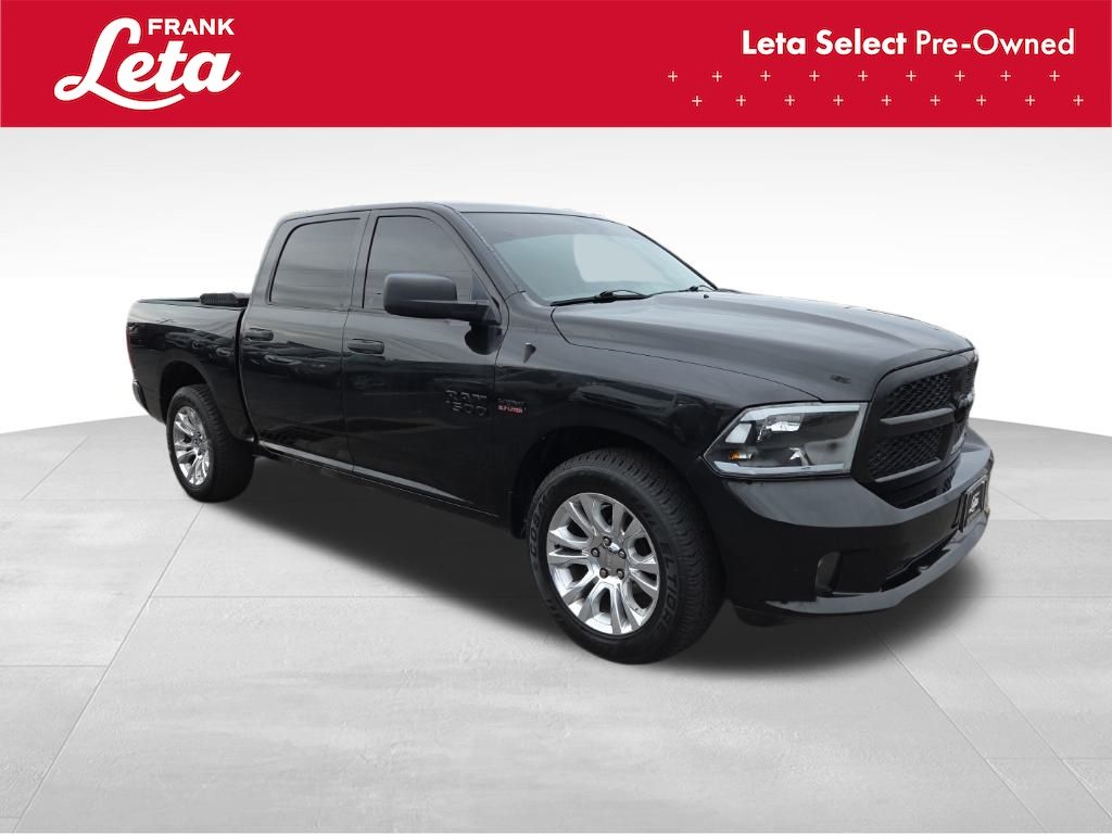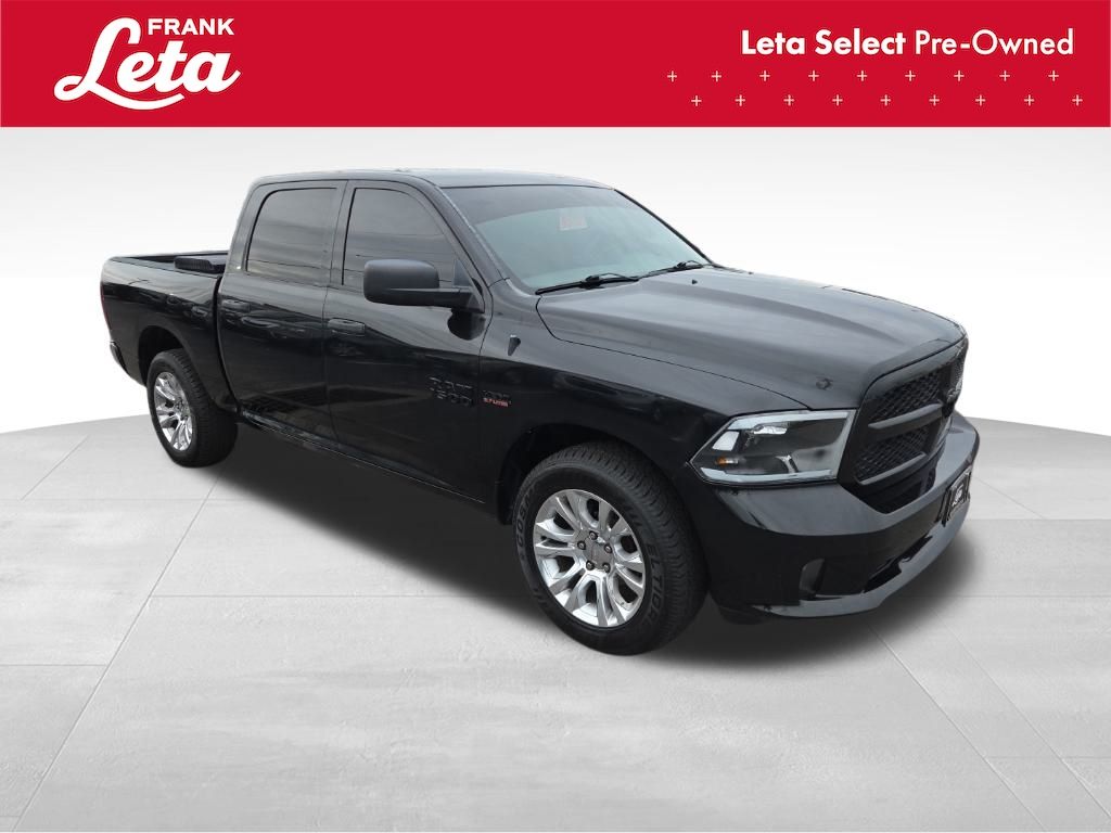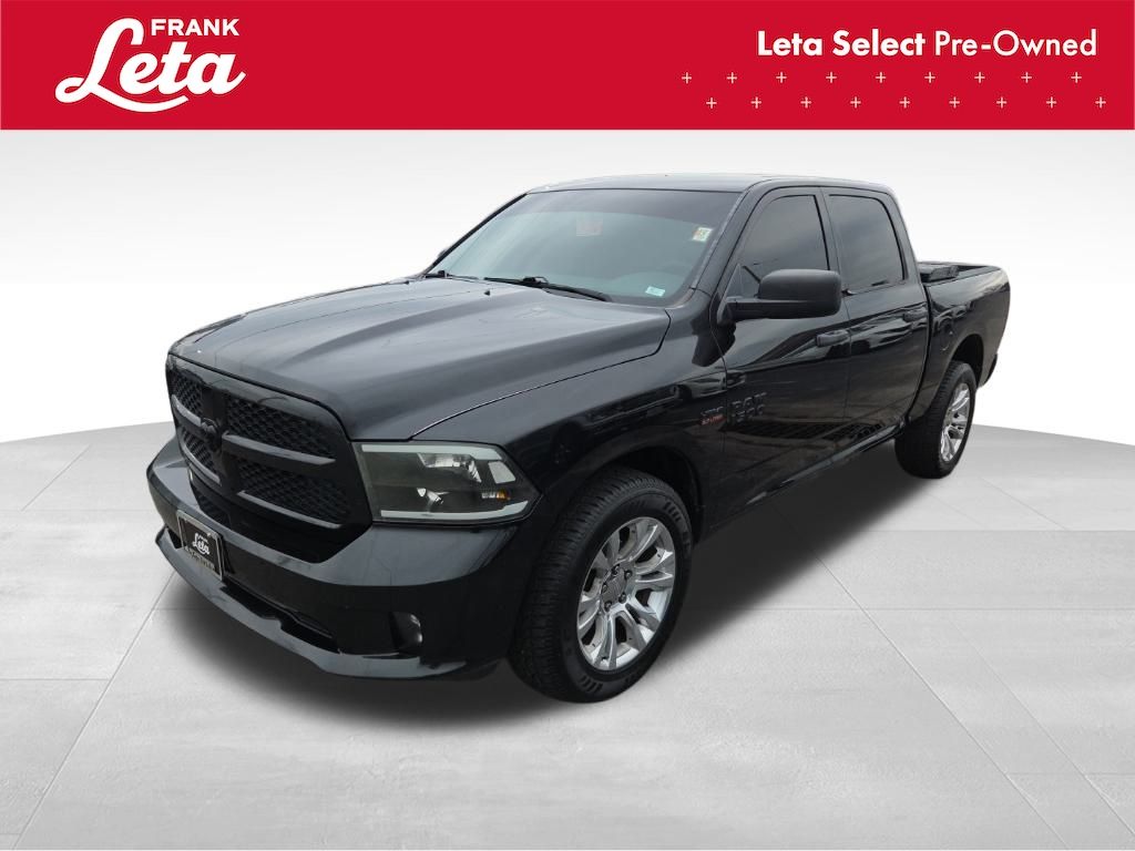 2017 Ram 1500 Express Brilliant Black Crystal Pearlcoat 1500 Express, Frank Leta Select Certified, HEMI 5.7L V8 Multi Displacement VVT, Brilliant Black Crystal Pearlcoat, Center Hub, Fog Lamps, Fully automatic headlights, Heated door mirrors, Integrated Voice Command w/Bluetooth, ParkView Rear Back-Up Camera, Wheels: 20" x 9" Aluminum Chrome Clad, 1-Yr SIRIUSXM Radio Service, 3.21 Rear Axle Ratio, 4-Wheel Disc Brakes, 40/20/40 Split Bench Seat, 5.0" Touchscreen Display, 6 Speakers, ABS brakes, Active Grille Shutters, Air Conditioning, AM/FM radio, Audio Jack Input for Mobile Devices, Black Exterior Mirrors, Black Rotary Shifter, Body Color Front Fascia, Body Color Grille, Body Color Rear Bumper w/Step Pads, Brake assist, Carpet Floor Covering, Charge Only Remote USB Port, Cloth 40/20/40 Bench Seat, Delay-off headlights, Delete Class IV Receiver Hitch, Delete Spray In Bedliner, Driver door bin, Dual front impact airbags, Dual front side impact airbags, Dual Rear Exhaust w/Bright Tips, Electronic Shift, Electronic Stability Control, Express Value Package, Exterior Mirrors w/Heating Element, Front & Rear Floor Mats, Front anti-roll bar, Front Armrest w/3 Cupholders, Front Center Armrest, Front wheel independent suspension, GPS Antenna Input, Heavy Duty Vinyl 40/20/40 Split Bench Seat, Low tire pressure warning, Manufacturer's Statement of Origin, Media Hub (USB, AUX), Occupant sensing airbag, Overhead airbag, Overhead Console, Passenger door bin, Power door mirrors, Power steering, Power windows, Quick Order Package 26J Express, Radio data system, Radio: Uconnect 3 w/5" Display, Radio: Uconnect 3.0, Ram 1500 Express, Rear anti-roll bar, Rear Folding Seat, Rear seat center armrest, Rear step bumper, Remote Keyless Entry w/All-Secure, Remote USB Port, SIRIUSXM Satellite Radio, Speed control, Storage Tray, Tachometer, Temperature & Compass Gauge, Tilt steering wheel, Tip Start, Traction control, Variably intermittent wipers, Voltmeter, 1500 Express, HEMI 5.7L V8 Multi Displacement VVT, Brilliant Black Crystal Pearlcoat, Center Hub, Fog Lamps, Fully automatic headlights, Heated door mirrors, Integrated Voice Command w/Bluetooth, ParkView Rear Back-Up Camera, Wheels: 20" x 9" Aluminum Chrome Clad. HEMI 5.7L V8 Multi Displacement VVT 8-Speed Automatic RWD 4D Crew Cab Odometer is 20348 miles below market average!