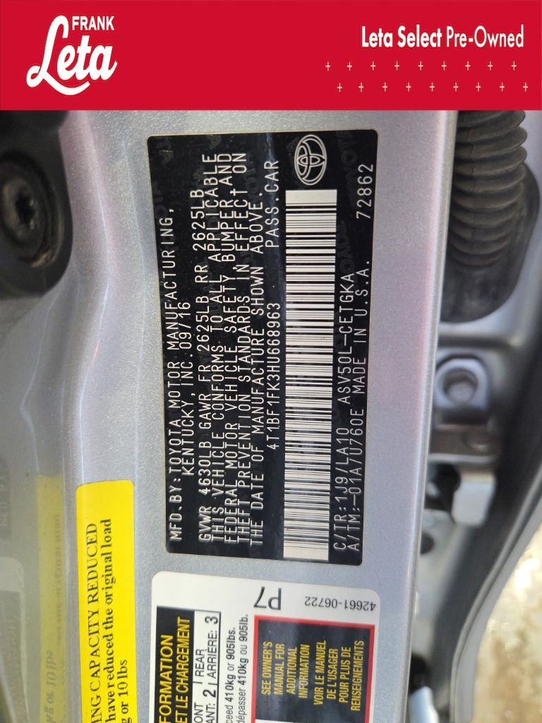 - VIN : 4T1BF1FK3HU668963