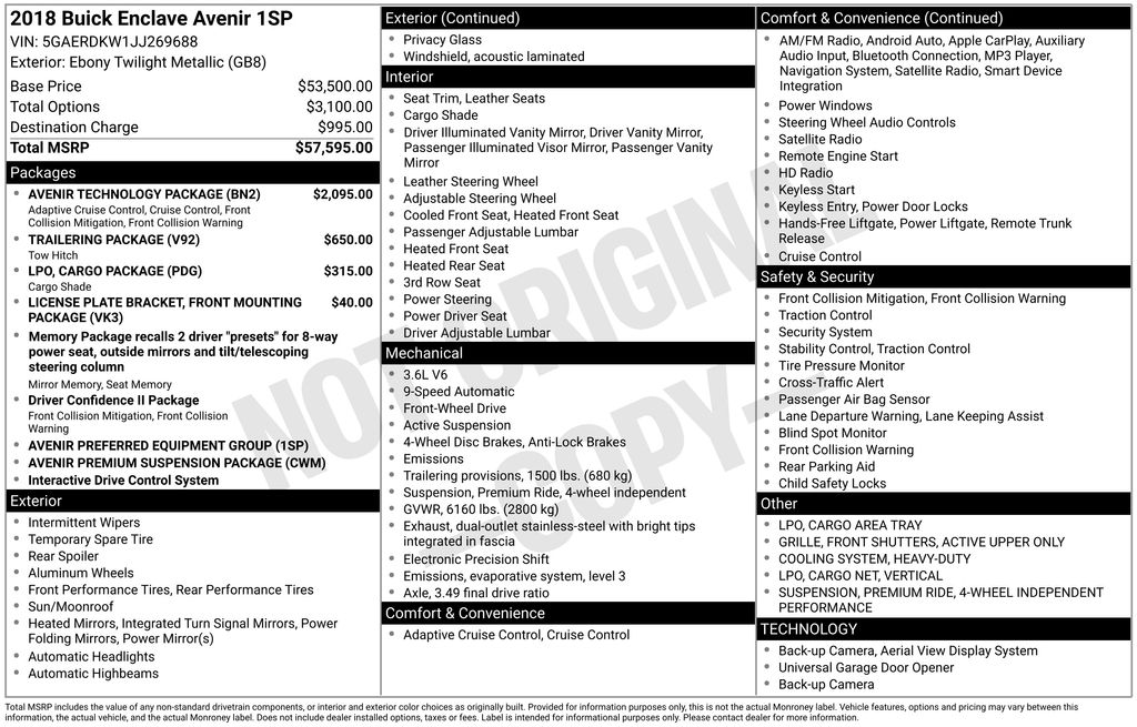 https://research.frankletaacura.com/cars/Used/2018/Buick/Enclave/Avenir/170760442018 Buick Enclave Avenir